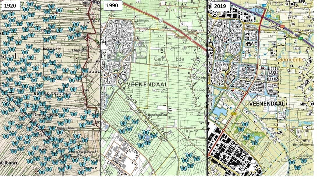 Veel geschikte plekjes voor vlinders zijn ver uit elkaar komen te liggen. En dat is een probleem: de meeste vlinders kunnen namelijk niet ver vliegen. Een grote weg of een kanaal kan al een te grote hindernis vormen en de barrières voor vlinders worden steeds groter. Wanneer een vlindersoort ergens verdwijnt is de kans groot dat hij daar nooit meer terugkomt.
