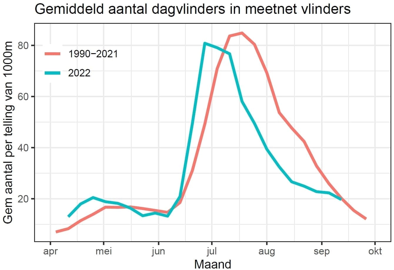De afgelopen twee maanden waren er niet veel dagvlinders te zien en duidelijk minder dan het gemiddelde van de afgelopen dertig jaar. Vooral de normaal...