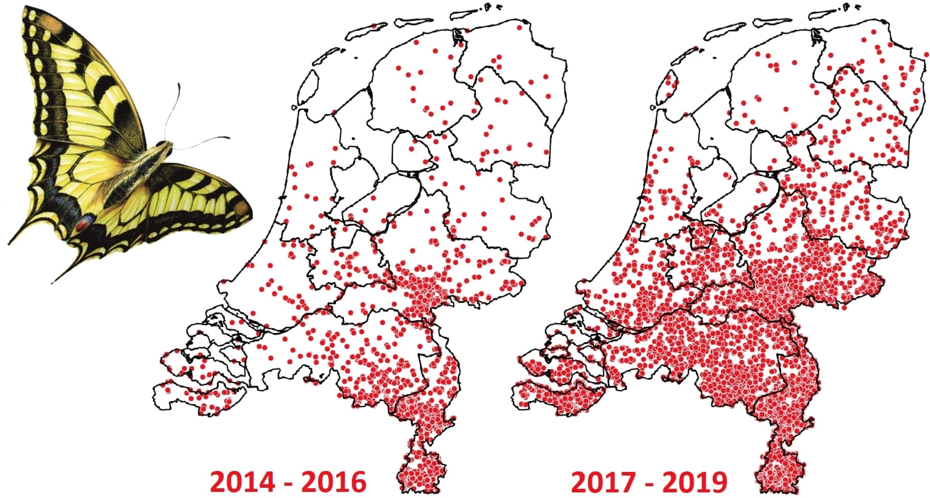 Veel meldingen van tropische vlinders in Nederland