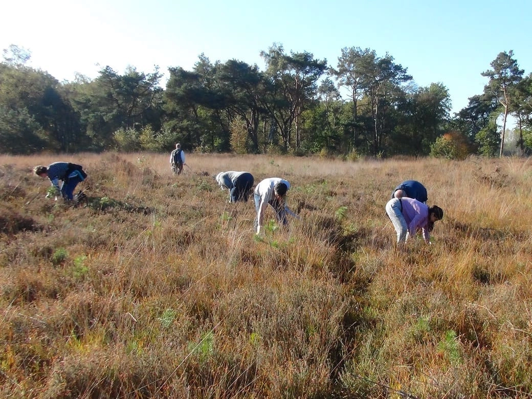 Zo’n 80 mensen staken zaterdag op de Strabrechtse heide de handen uit de mouwen voor het gentiaanblauwtje. Vluchtelingen uit het asielzoekerscentrum in Budel en geocachers...