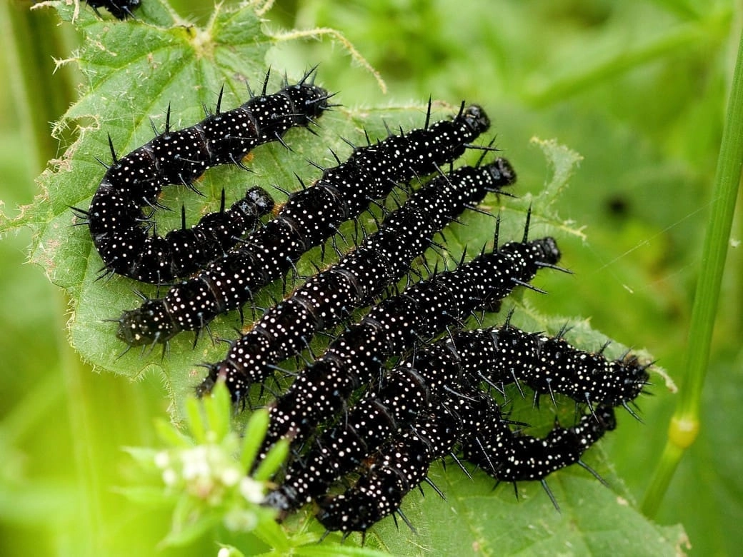 Veel rupsen op de brandnetel