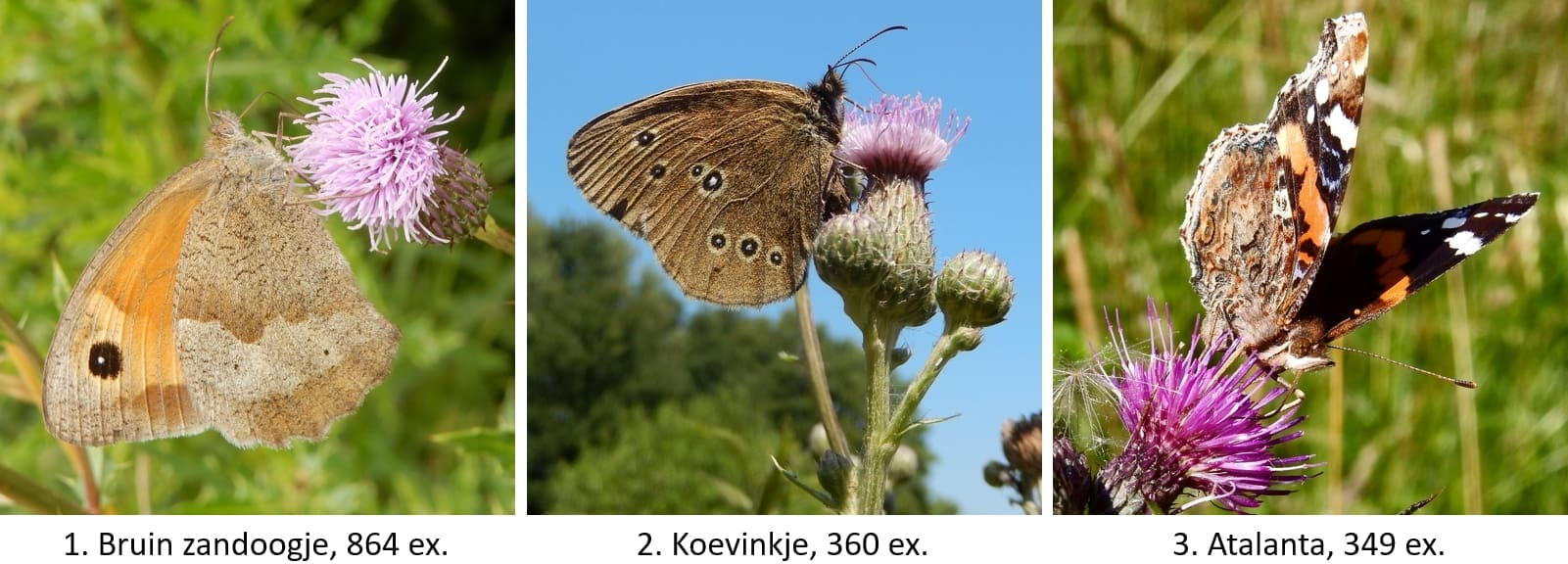 Het Kuinderbos (FL) is een gebied met veel variatie. Er zijn dichte bosdelen, maar ook brede zonnige bospaden en (grote) open plekken in het bos. Je vindt er stukken met heide en uitgestrekte bloemrijke graslanden. Het beheer van dit gebied door Staatsbosbeheer is gericht op behoud en versterking van die variatie en dat is terug te zien in de grote biodiversiteit in het Kuinderbos. Dit zie je ook terug in de vlinderbevolking: ook dit jaar zijn er in dat ene uur op zondagmiddag weer 22 soorten dagvlinders gevonden. Er waren meer dan zestig enthousiaste vlinderaars, ervaren en minder ervaren, jong en wat ouder, die meededen. In groepjes ging men op pad en zo zijn er dertig verschillende locaties binnen het Kuinderbos doorkruist. Door het prachtige warme en zonnige weer waren de vlinders zeer actief en konden ze prima worden geteld. Er zijn dit jaar meer vlinders geteld dan de voorgaande vijf edities: bijna 3500 in ruim een uur. De absolute nummer één was het bruin zandoogje, dat in de graslandgebieden erg veel aanwezig was. De tweede plaats was voor een ander zandoogje, het koevinkje, dat wat meer in de bosachtige delen aanwezig was.