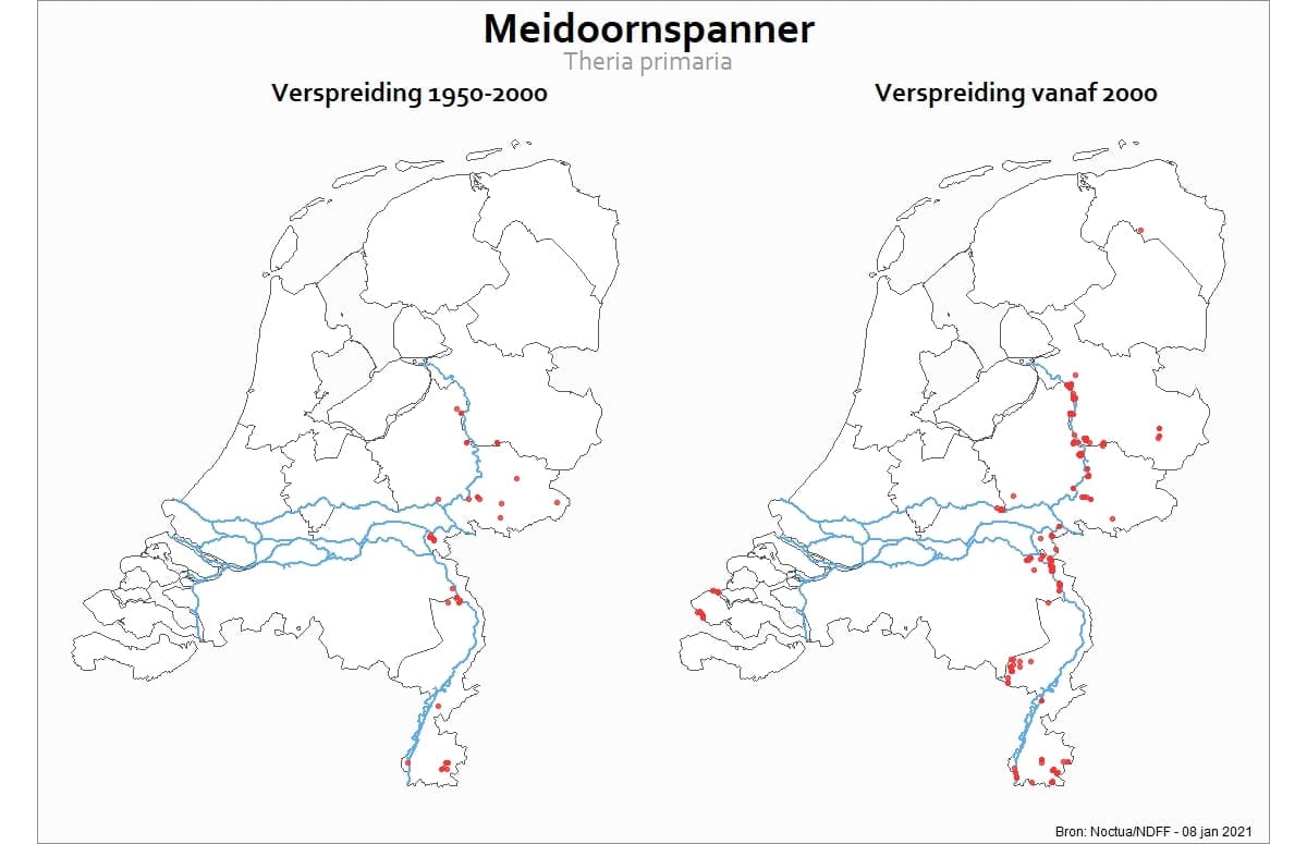 Nachtvlinders hebben in tegenstelling tot dagvlinders geen zon nodig om actief te worden. Hierdoor zijn er soorten die al vliegen als de temperatuur slechts een paar graden boven nul is. De meidoornspanner is een echte wintersoort en vliegt vanaf half december tot begin februari. Inmiddels zijn de eerste waarnemingen van deze vlinder al weer gemeld. Net als bij de meeste andere spanners die in de winter actief zijn, zoals de najaarsspanner, wintervlinders en voorjaarsspanners, zijn de vrouwtjes van de meidoornspanner vleugelloos, waardoor zij dus niet kunnen vliegen. Ook de mannetjes vliegen weinig: de vlinders lokken met een lichtopstelling is dan ook weinig effectief. De beste manier om de soort te vinden is dan ook om met een zaklamp de waardplant – meidoorn of sleedoorn – af te zoeken, waar vooral de mannetjes op de nu kale takken goed te vinden zijn. Een leuke activiteit om het nieuwe nachtvlinderjaar mee af te trappen.