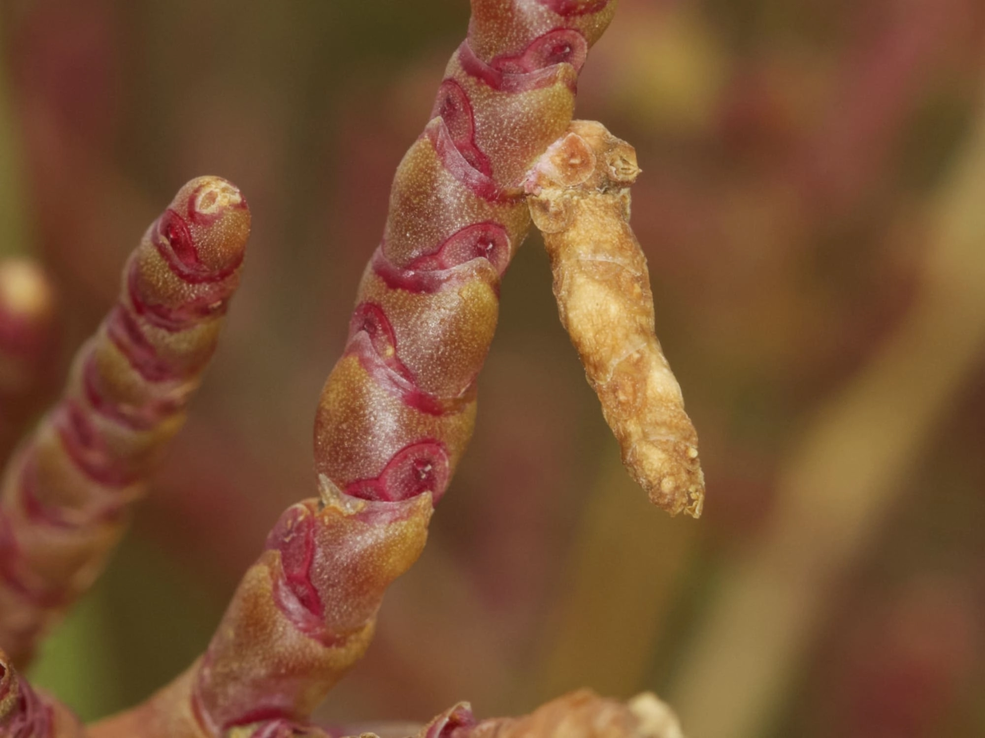Gedurende een aantal weken per jaar zijn de kokers van de zeekraalkokermot te vinden op de plant. De rups leeft eerst in een van de zeekraalaren, en zodra deze volledig is uitgehold, wordt deze afgebeten en gebruikt als ‘koker’. De kokers zijn te vinden door te letten op kleine stompjes die vaak bruin afsteken en haaks op een aar of stengel van zeekraal staan. De soort is met gericht zoeken goed te vinden op plekken waar veel zeekraal bij elkaar staat.