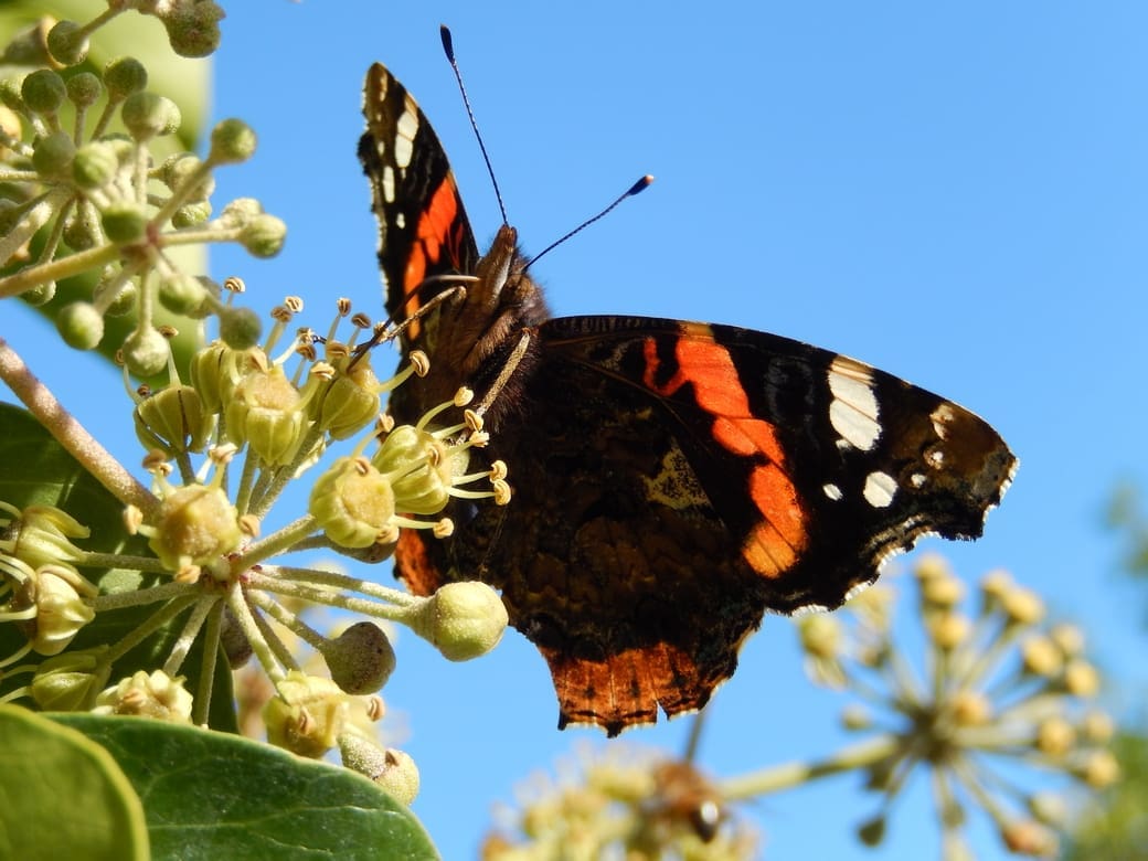 Zo’n lange reis kost natuurlijk veel energie. Vlinders hebben dan ook ‘brandstof’ nodig. Vlinders leven van nectar uit bloemen. Je ziet ze daarom nu veel op bloeiende klimop, koninginnenkruid, asters en ijzerhard. Ook vlinderstruiken die nu nog bloeien zijn een goede nectarbron.