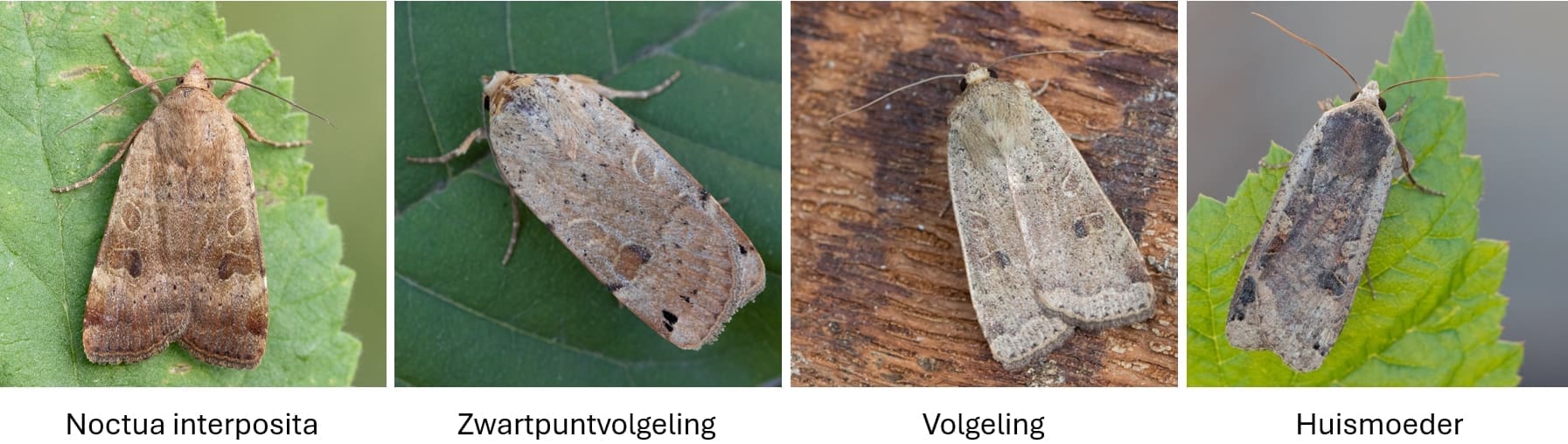 Veel mensen kennen wel de huismoeder (Noctua pronuba): een grote nachtvlinder met bruine voorvleugels en felgele achtervleugels met een zwart bandje, die pas zichtbaar worden als het beest door onze kamer vliegt. Minder bekend zijn de zes andere soorten uit het geslacht Noctua die in Nederland voorkomen: de breedbandhuismoeder (N. fimbriata), de kleine huismoeder (N. interjecta), de open-breedbandhuismoeder (N. janthe), de kleine breedbandhuismoeder (N. janthina), de volgeling (N. comes) en de zwartpuntvolgeling (N. orbona).