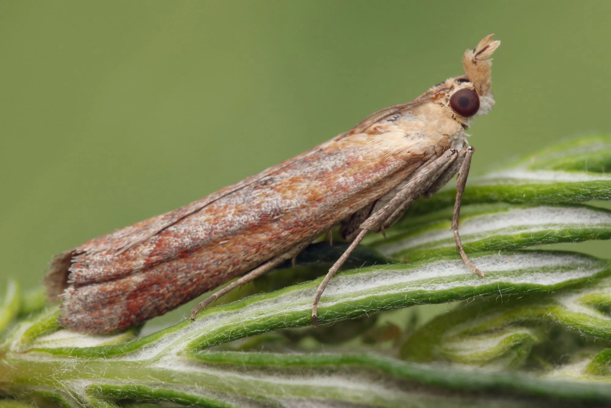 In het weekend van 29 tot 30 juni 2025 bracht De Vlinderstichting een bezoekje aan Zuid-Limburg tijdens het zogenaamde ‘Vlinderstichtingweekend’. Collega’s zoeken dan een camping uit en er wordt een weekend lang lekker gestruind. Uiteraard stonden er ook twee avonden ‘nachtvlinderen’ op de planning, nabij Eys, waarvoor een vergunning was verstrekt door stichting Het Limburgs Landschap. De eerste avond was een groot succes: er werden meer dan 210 soorten gezien, een totaallijst van zowel macronachtvlinders als microvlinders. Om de kans op leuke waarnemingen te spreiden, werd er voor de zekerheid ook een LedEmmer op de camping achtergelaten. Je weet maar nooit wat er de volgende ochtend in zit. De camping, die aan een akker grensde, was echter vrij open, zonder al te veel struiken. Hoge verwachtingen hadden de collega’s dus niet.