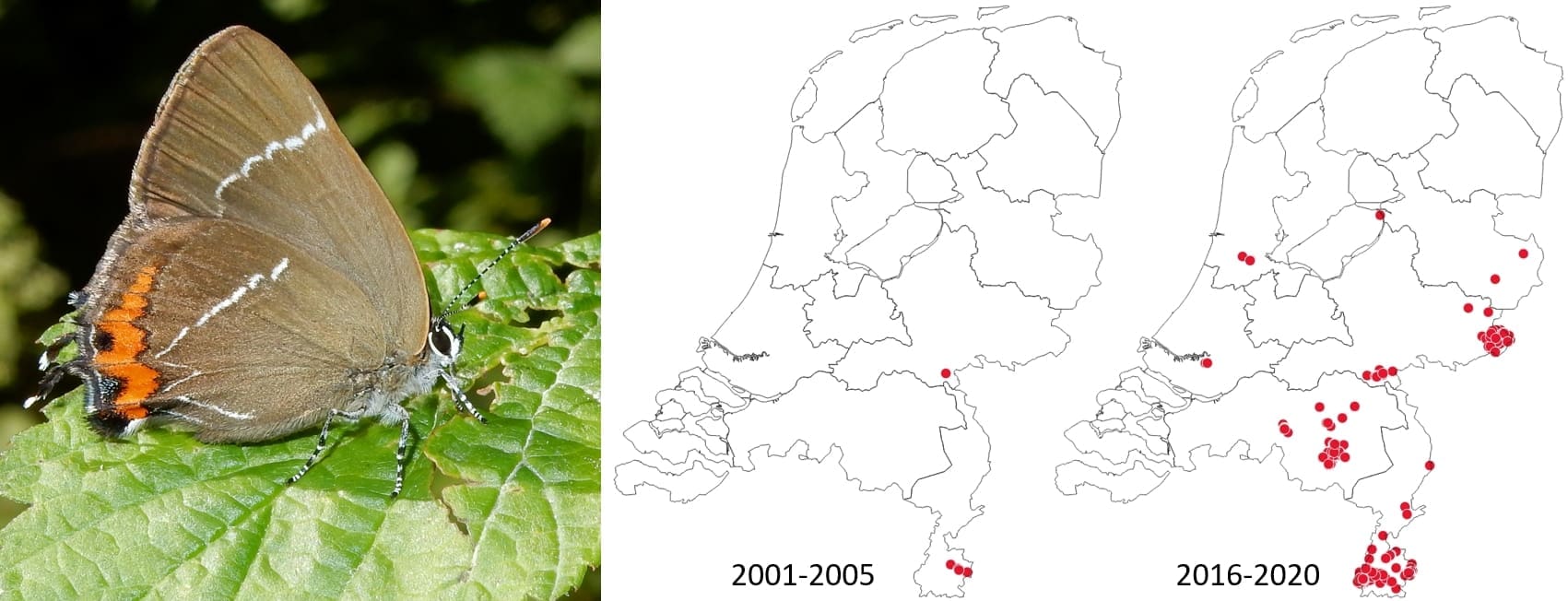 Tot een jaar of tien geleden was de iepenpage een uiterst zeldzame vlinder, die eigenlijk maar op één plek in Limburg werd gezien. De laatste tijd zijn er veel meer meldingen, ook uit de rest van Nederland. Met behulp van kaarten en overzichten van de locaties waar iepen voorkomen, is De Vlinderstichting veel gerichter onderzoek gaan doen. En met succes!