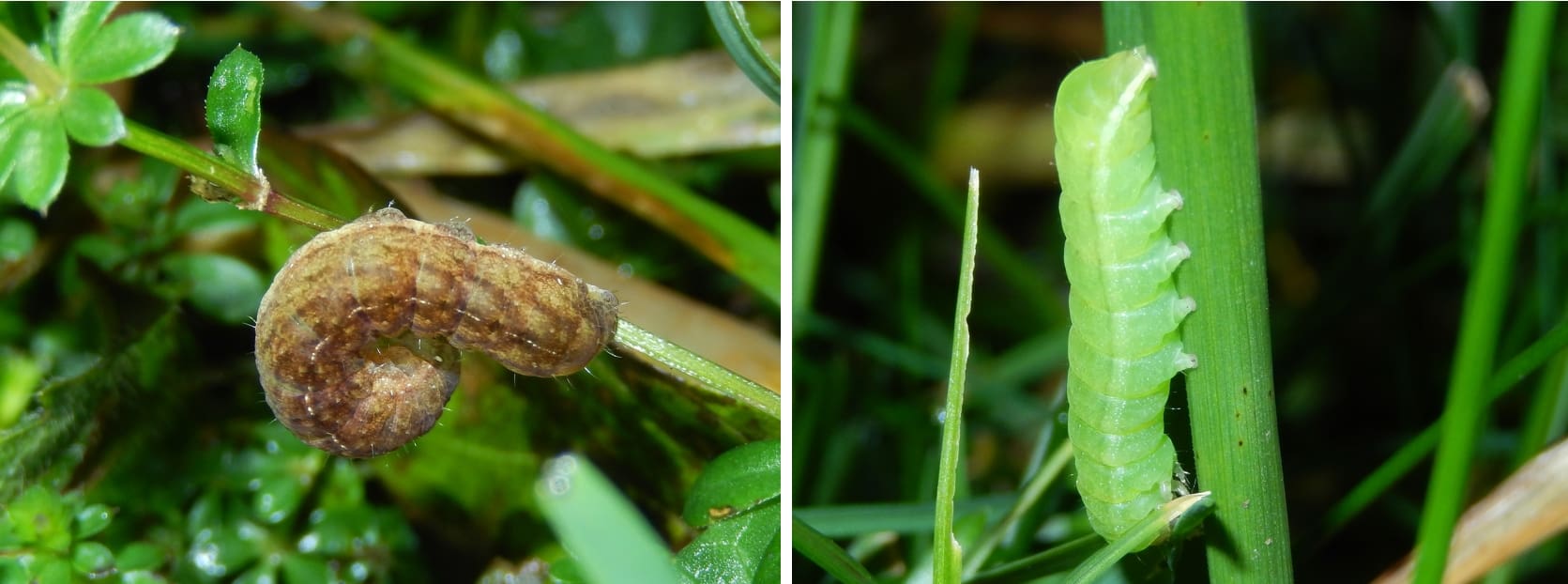 Veel rupsen, vooral van nachtvlinders, verbergen zich overdag en komen ’s avonds tevoorschijn om te eten. Nu in het vroege voorjaar kun je tientallen soorten vinden als je tussen 19:00 en 21:00 uur op zoek gaat in je tuin.