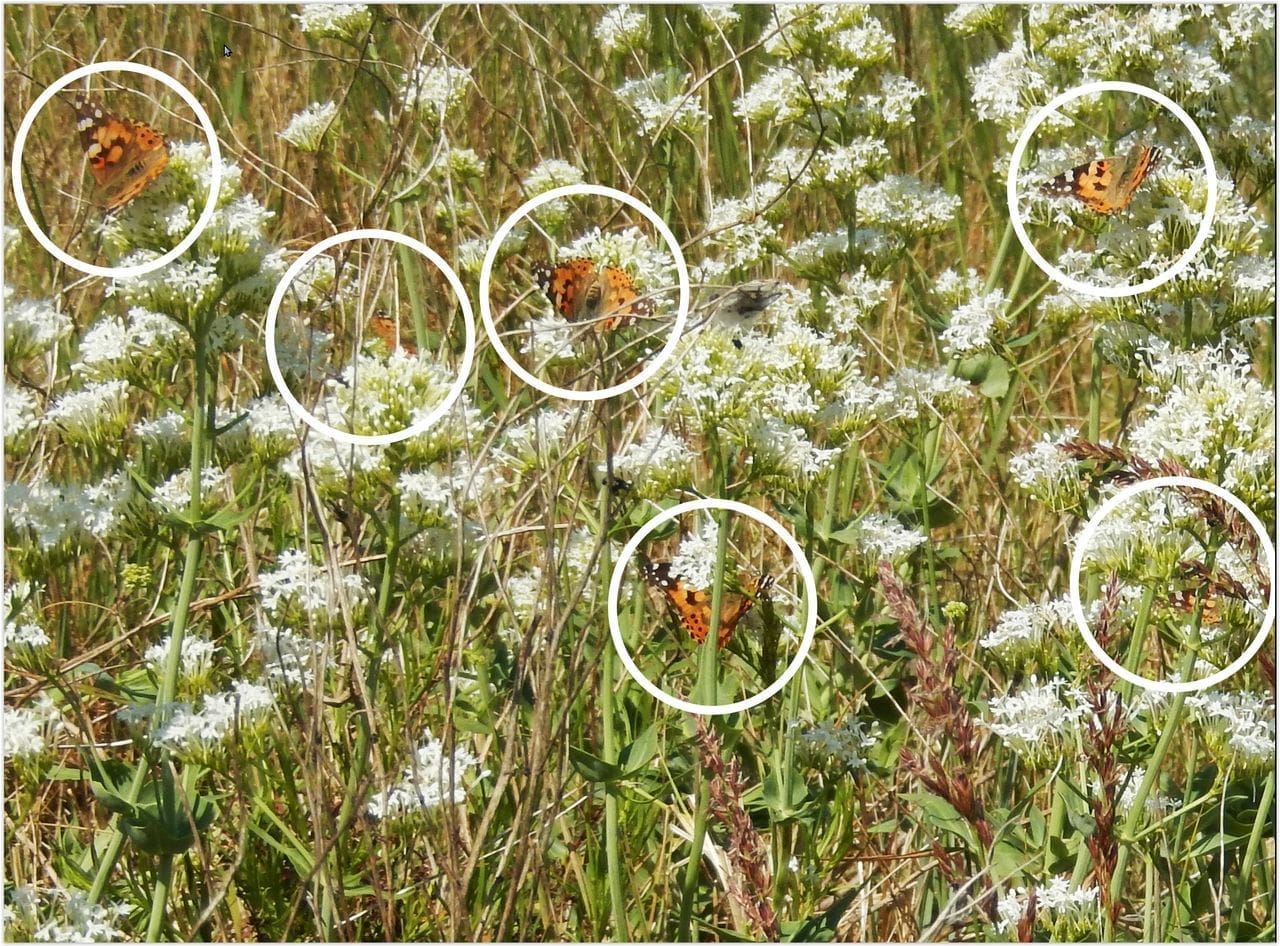 De distelvlinders die nu aanwezig zijn en er dus al een flinke tocht op hebben zitten, zijn wat kleiner dan de generatie die hier groot wordt en vanaf eind juli te zien is. Ze zijn ook fletser van kleur en je ziet vaak flinke beschadigingen. Zie je ook distelvlinders, geef dat dan door via Waarneming.nl, Telmee of, als je hem in je tuin ziet, via de Jaarrond Tuintelling.