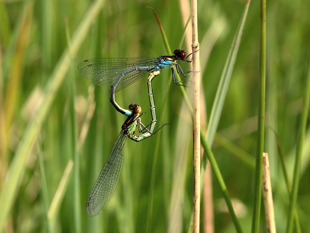 Het voorjaar is de tijd voor de juffertjes. In mei en juni zijn deze veel te vinden. Een daarvan is de grote roodoogjuffer die, zoals de naam al verklapt, te herkennen is aan de dieprode ogen. Onmiskenbaar in het voorjaar, maar in de loop van de zomer wordt het lastiger, want dan verschijnt de kleine roodoogjuffer, ook zwart met een blauw lantaarntje en rode ogen.