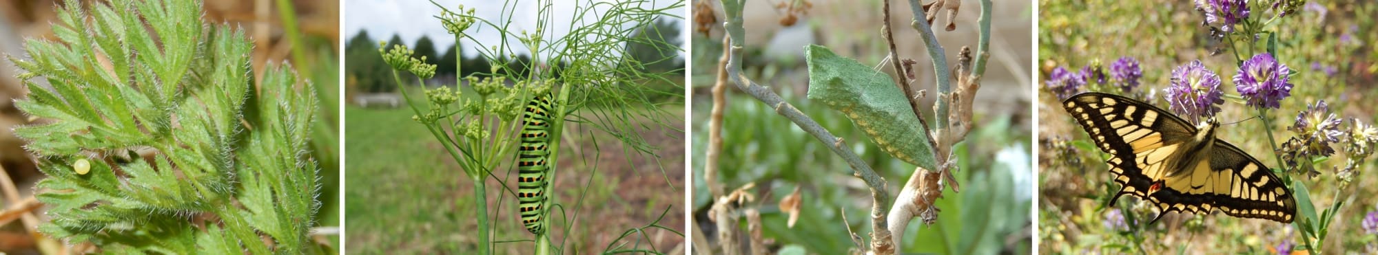 De koninginnenpage plant zich ook overal in ons land voort. Allerlei schermbloemigen worden als waardplant gebruikt. Rupsen zijn namelijk wel erg kieskeurig en hebben maar een of enkele verwante plantensoorten waarop ze kunnen overleven. Voor de rupsen van de koninginnenpage zijn de worteltjes in de moestuin populair, maar ook de wilde peen in wegbermen. Ook kervel, dille en andere schermbloemigen staan op het menu van de rups van de koninginnenpage. De vlinders die nu vliegen, gaan op zoek naar een partner en de vrouwtjes zetten vervolgens hun eitjes af op de waardplant. De vlinders sterven dan en in de loop van de zomer komen hun nakomelingen tevoorschijn. Dan herhaalt de voortplanting zich en sterven die zomervlinders. De pop van de koninginnenpage overwintert. De pop komt in twee kleurvormen voor, een groene en een bruine. Die bruine geeft de overwinterende pop tussen de verdorde planten de beste schutkleur. Volgend jaar april komt de volgende generatie koninginnenpages tevoorschijn.
