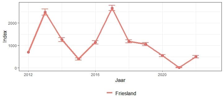 Opvallend dat het gebied de Weerribben juist een recordjaar had met hele hoge aantallen grote vuurvlinders. In dit gebied heeft de droogte in 2022 niet geleid tot lage waterstanden. Hoewel onbewezen, is dit vermoedelijk de belangrijkste verklaring voor het verschil in voortplanting tussen de verschillende gebieden.