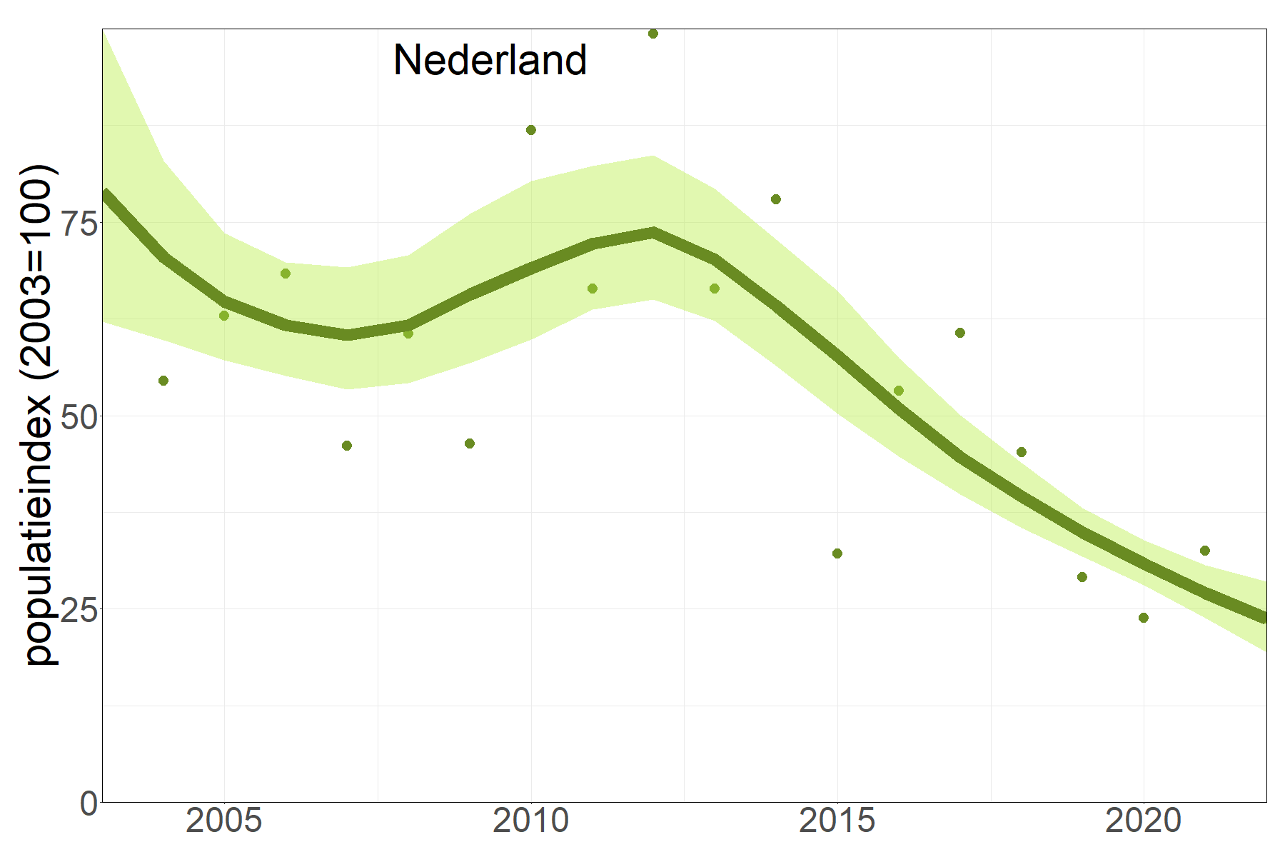 Een tweede laagveensoort die de afgelopen jaren sterk is afgenomen is de groene glazenmaker. Sinds 2018 heeft deze libel landelijk een dalende trend ingezet. Wel blijkt dat de aantallen het sterkst zijn gedaald in Zuid-Holland en Utrecht. Vooral in Zuid-Holland is de trend heel slecht. De Boerensloottelling, gestart in 2016, heeft in Zuid-Holland in 2023 geen enkele waarneming van groene glazenmaker meer opgeleverd. In Utrecht zijn de aantallen ook sterk aan het dalen, maar daar zijn er nog wel op enkele plaatsen groene glazenmakers gezien. In de natuurgebieden houdt de libel het iets beter vol, maar ook daar zijn de aantallen afgenomen. In Zuid-Holland resteert hij nog in drie gebieden: Reeuwijkse Hout, polder De Nesse en in de Nieuwkoopse plassen, terwijl hier in 2016 nog overal groene glazenmakers konden worden aangetroffen in het agrarisch gebied. In Friesland en Groningen is de daling iets minder sterk, maar ook daar zijn de aantallen aan het afnemen, vooral in de boerensloten.
