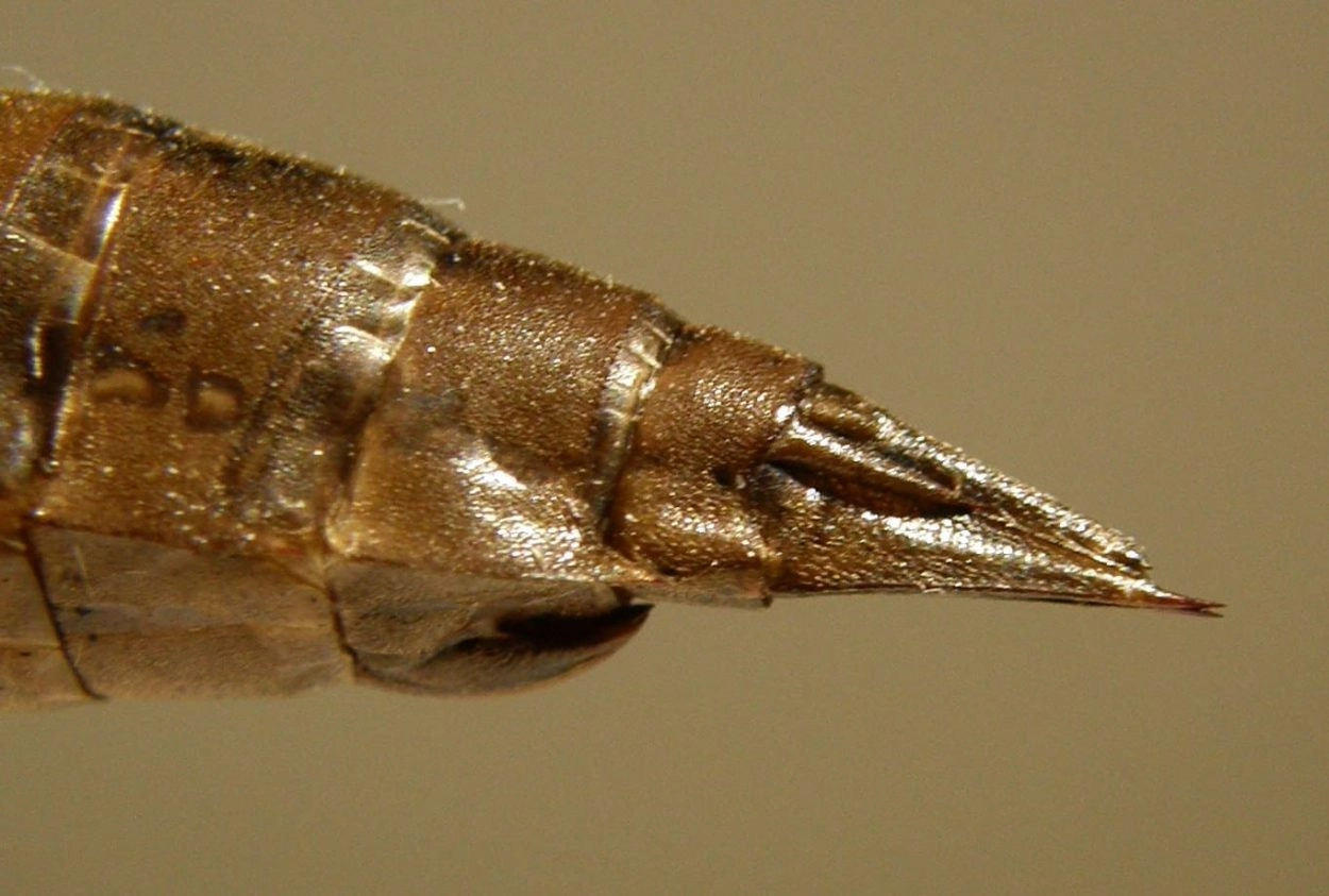 Lengte 34-38 mm. Groot en slank met opvallend lang vangmasker.
