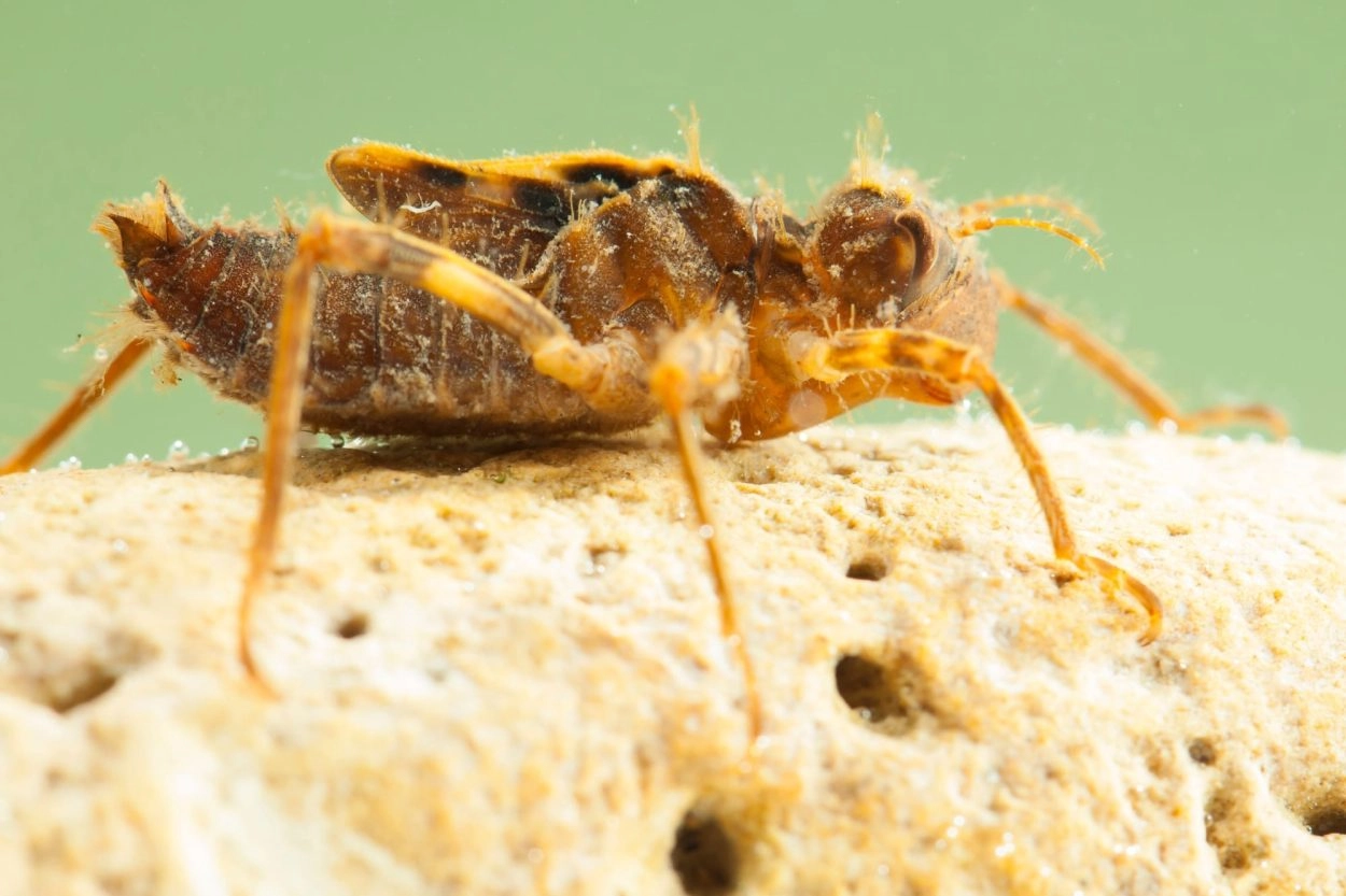 De larven overwinteren twee of drie keer alvorens uit te sluipen. Uitsluipen gebeurt vooral van eind mei tot half juni. De huidjes kunnen gevonden worden op stenen, boomwortels, oevervegetatie en steilranden, tot enkele meters van het water.