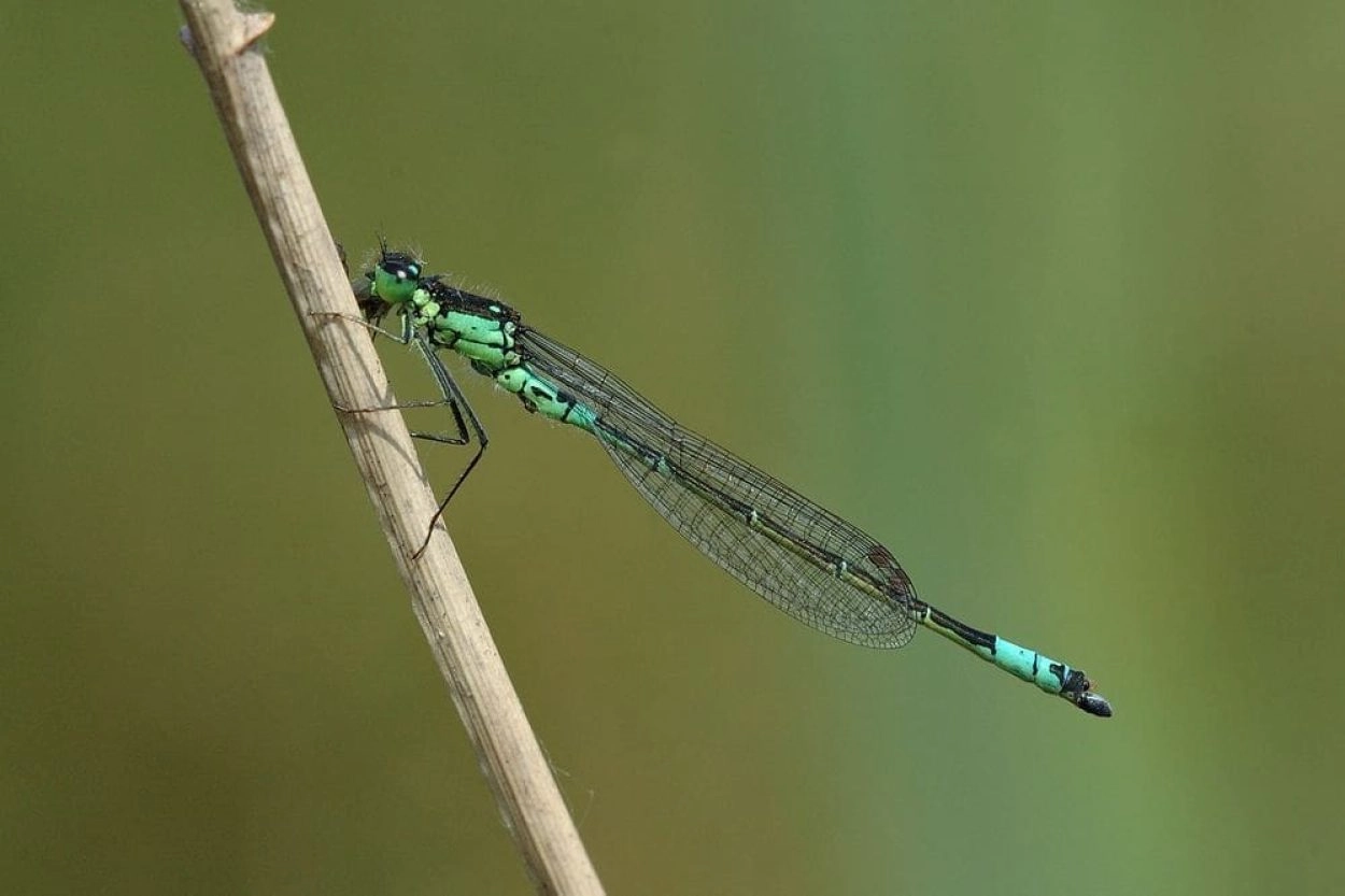 Van eind april tot eind mei. Hoofdvliegtijd zeer kort en sterk afhankelijk van het weer, meestal in de eerste helft van mei. De imago’s vliegen goed verscholen tussen halfopen, in het water staande rietvegetatie. Behalve dat ze tussen de stengels makkelijk over het hoofd zijn te zien, gaan ze schuil tussen een meestal veel grotere groep variabele waterjuffers. Eitjes worden in tandem afgezet op drijvende en ondergedoken planten.