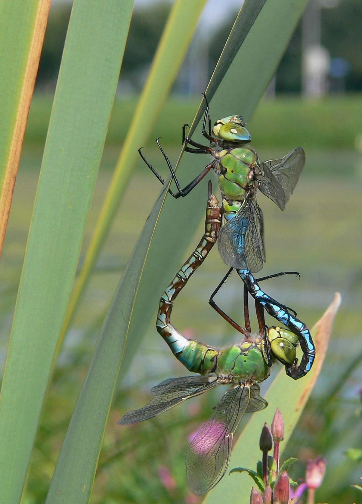 De larven overwinteren een of twee keer. De larven die een tweede winter doorbrengen doen dit als volgroeide larve, waardoor ze al in mei in een korte periode kunnen uitsluipen. De larven die na een winter al uitsluipen doen dit later en verspreid over een langere periode: juni tot en met eind augustus. De larvenhuidjes zijn tot circa anderhalve meter hoog in de overvegetatie te vinden.