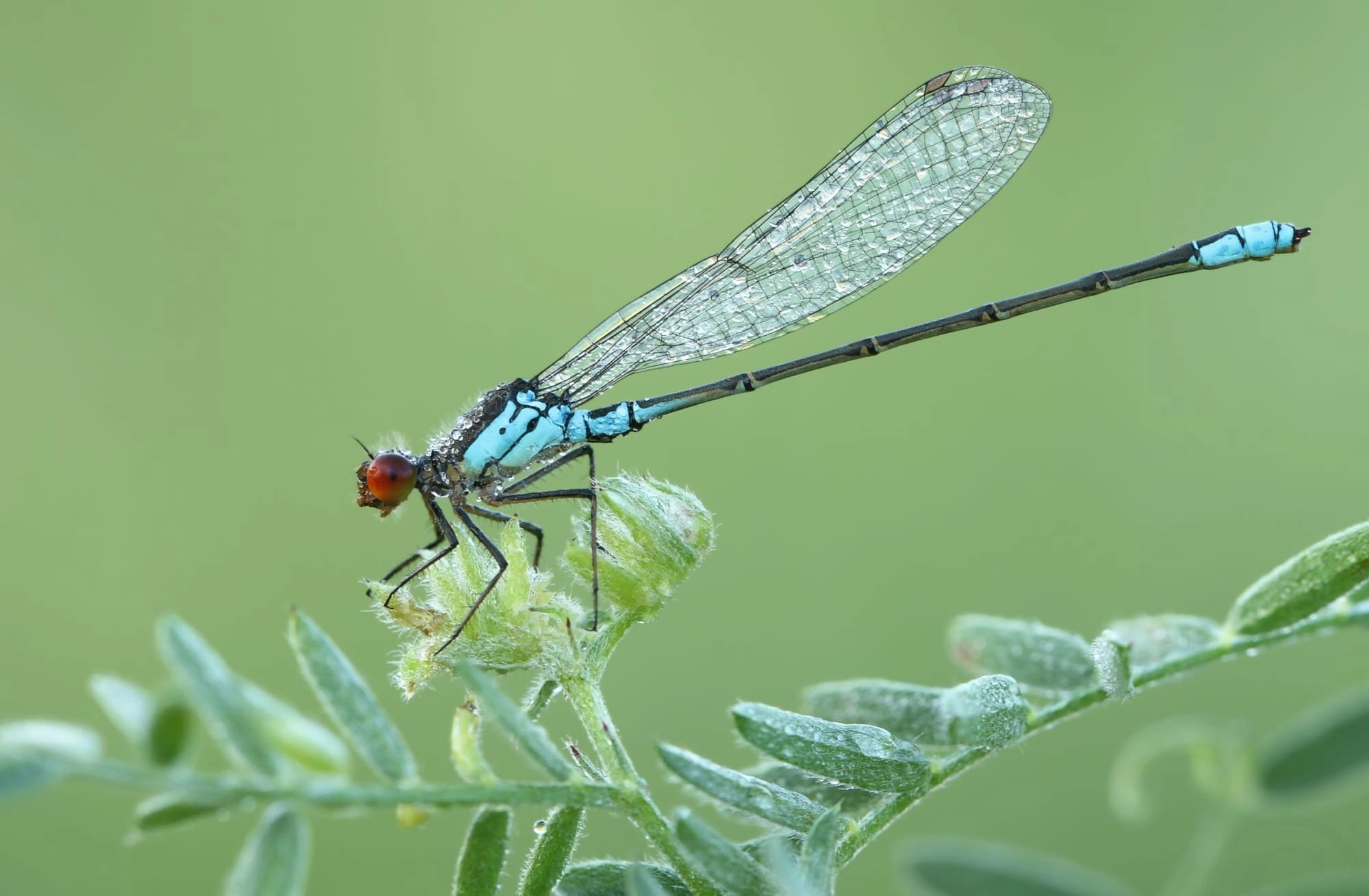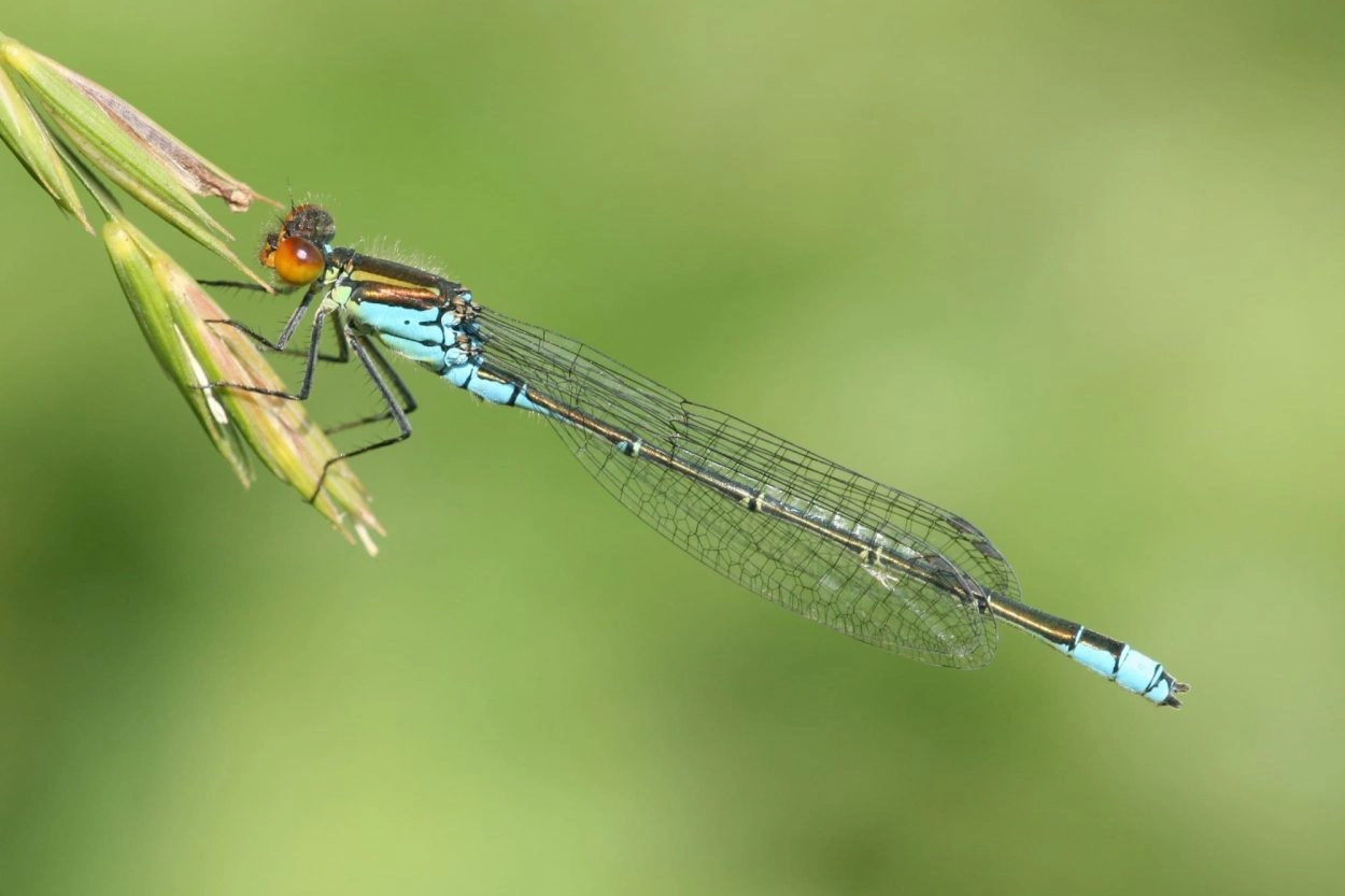 Groot. Jonge imago’s vliegen soms ver van het water af en nieuwe habitats worden snel bezet. Is op de Waddeneilanden bijvoorbeeld veel vaker waargenomen dan de grote roodoogjuffer, terwijl beide soorten een vergelijkbaar habitat prefereren.