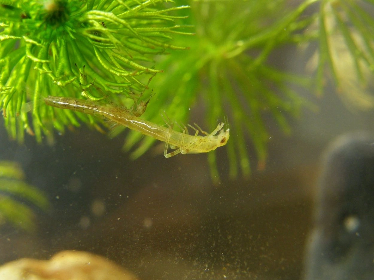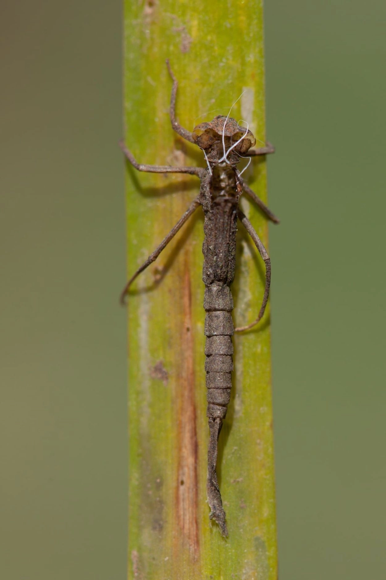 Lengte: 18 - 21 mm; waarvan de achterlijf aanhangsels, procten, 5-6 mm.De larven zijn vrij klein, met puntige procten, zonder banden. Borstelharen op de carina lateralis zijn groot en op een enkele regelmatige rij.Er is een groot verschil in lengte tussen de doornenrij op de bovenzijde van een proct met die op de onderzijde. Kortste doornenrij van een proct bereikt maximaal een derde van de lengte van de proct.