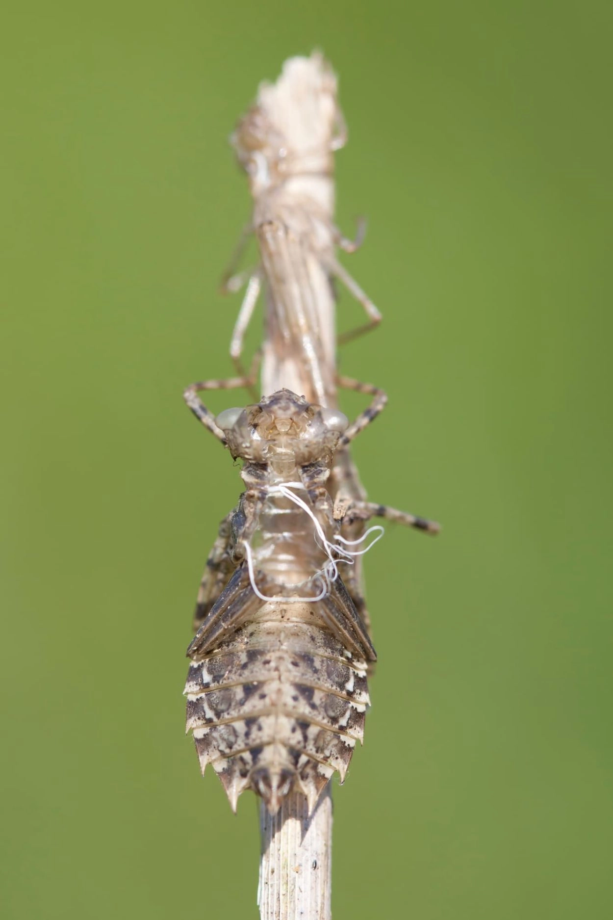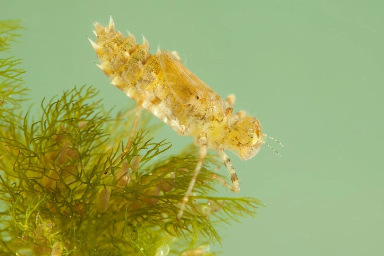 De larven overwinteren twee keer. Uitsluipen gebeurt van half mei tot begin juli, met een piek in de eerste helft van juni. Larvehuidjes zijn te vinden meestal tot enkele decimeters hoogte in de oevervegetatie. Bij het eieren leggen is het wijfje alleen. Ze tipt met de punt van achterlijf ritmisch in het water om de eieren te laten zinken. De eieren zijn klein (0,5 x 0,4 mm), ovaalrond, bruin en zonder gel-mantel.