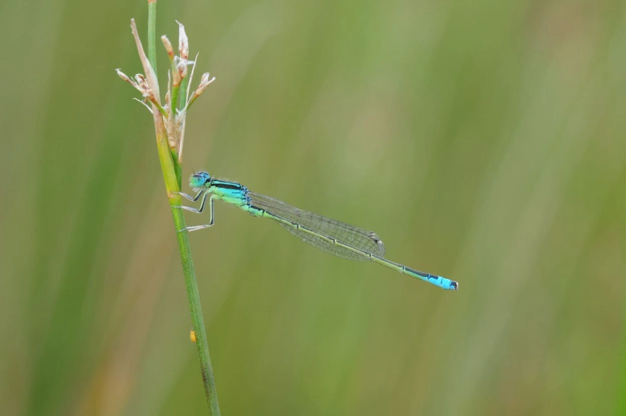 Gelijkende soorten: Lantaarntje. Vrouwtjes zijn te verwarren met andere donker gekleurde waterjuffers. Meer over gelijkende soorten: Mannetjes lantaarntje hebben een ‘lantaarntje’ dat meer naar voren is ‘verschoven’: in plaats van de top van segment 8 en heel segment 9 is alleen het hele segment 8 blauw gekleurd. Vrouwtjes lantaarntje hebben altijd een ‘lantaarntje’ op segment 8, hoewel dit bij donkere exemplaren grijsbruin kan zijn en daardoor slechter zichtbaar. Vrouwtjes tengere grasjuffer hebben nooit een ‘lantaarntje’.