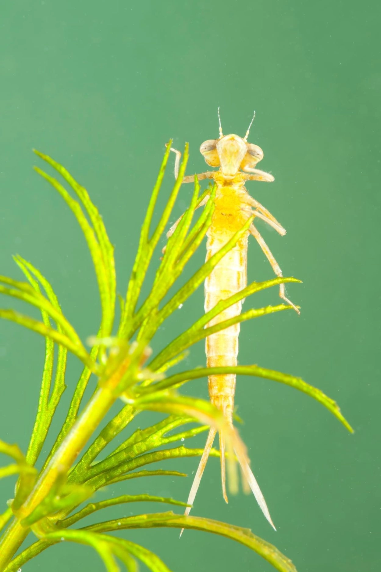 De larven overwinteren meestal een keer en sluipen uit van half mei tot begin september. Uit zuidelijke landen worden twee of zelfs drie generaties per jaar gemeld, in snel opwarmende habitats. Er zijn aanwijzingen voor dat een tweede generatie ook in Nederland optreedt, maar het is nog onduidelijk of dit regel is of uitzondering. De vliegperiode laat wel twee pieken zien, wat wijst op twee generaties. De eitjes zijn goed in staat om droge periodes te overleven. Tussen waterplanten of op de kale bodem. De larvehuidjes zijn weinig variabel van kleur.Ze zijn vaak te vinden tot maximaal enkele centimeters hoog op planten in de oever of op al aanwezige emerse vegetatie, soms met de procten nog in het water."