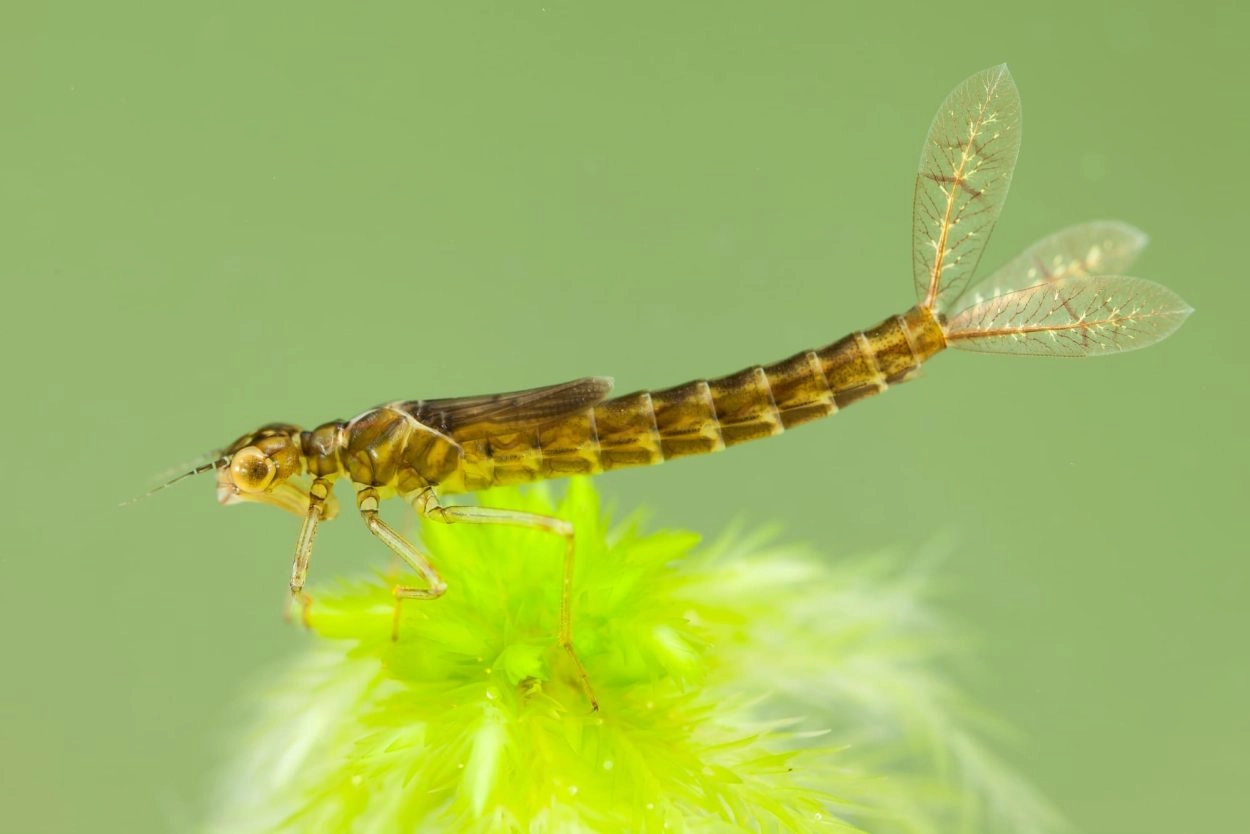 Lengte: 20 - 25 mm; waarvan de achterlijf aanhangsels, procten, 6-7 mm.De larven zijn vrij klein, met afgeronde procten, vaak met donkere banden (max. drie) ter hoogte van de nodaallijn. Deze nodaallijn is zonder een duidelijke bocht richting de basis van de proct en hooguit licht S-vormig gebogen.