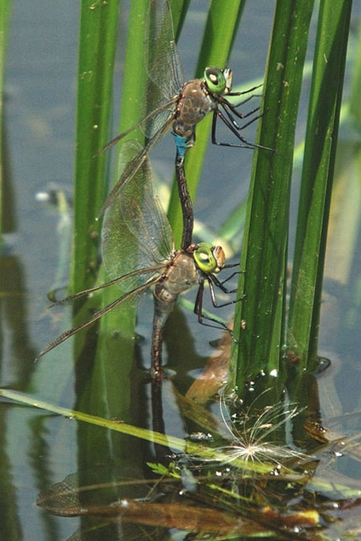 De larven overwinteren een of twee keer. Uitsluipen gebeurt in Zuid-Europa vanaf het vroege voorjaar tot laat in de zomer, maar in Nederland vermoedelijk van juni tot en met augustus. De larvenhuidjes zijn te vinden tot circa een halve meter hoog in de oevervegetatie.