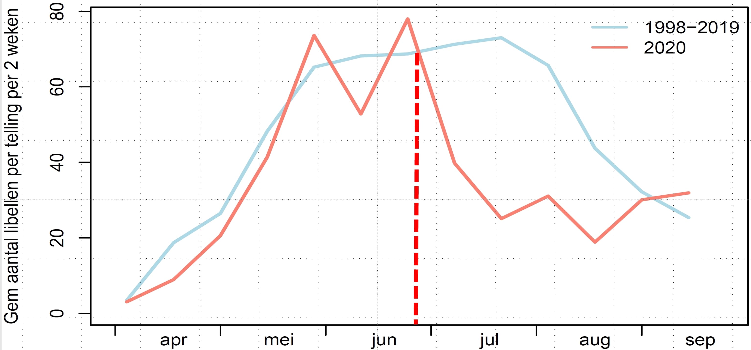 Het gaat richting jaarwisseling en dat is het moment om terug te kijken. Hoe ging het in 2020 met de libellen? Uiteraard zien we per soort verschillen, maar over het geheel genomen was het een slecht libellenjaar. Veel soorten vlogen (veel) minder dan het gemiddelde van de afgelopen jaren. Gelukkig waren er ook een paar positieve uitzonderingen.