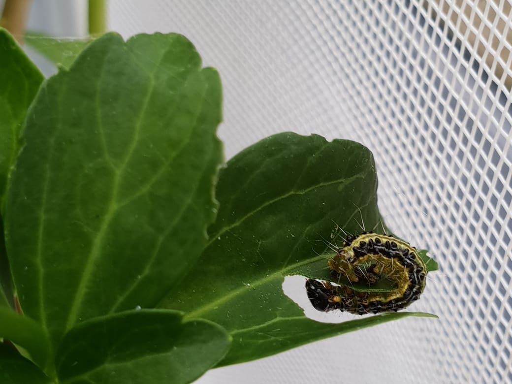 Eline Arts, studente aan het Helicon MBO in Geldermalsen, deed bij De Vlinderstichting kweekproeven met de buxusmot. Ze heeft rupsen en vlinders van de buxusmot bij zes verschillende struiken geplaatst en gekeken wat er gebeurde.