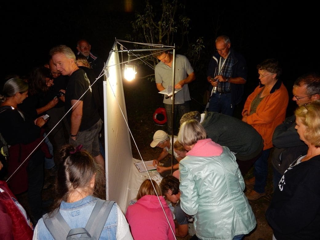 Lichten doe je door een felle lamp, die veel UV-licht uitzendt, ergens te hangen met een wit laken daarbij. Het felle licht verwart de nachtvlinders en ze gaan zitten op het witte laken dat heel licht is en de nachtvlinders doet denken dat het dag is: ze gaan dus weer in rust. In een goede nacht kun je vijftig of nog veel meer vlinders op je laken hebben zitten. Niet alle soorten komen op licht af en een andere manier om ze te zien te krijgen is door een zoete stof op bomen te smeren. Dat is vaak (appel)stroop aangevuld met veel suiker en vaak ook wat alcoholica. Binnen een uur nadat je dat hebt gesmeerd, zitten er nachtvlinders van te snoepen. En hoewel het meestal een kleverige substantie is, zullen ze er wel van eten, maar er nooit in vast blijven zitten. Als u dat niet gelooft, kunt u het zelf verifiëren door langs te komen op een van de openbare Nachtvlindernachtplekken. Omdat het eind augustus is kunnen de eerste vlinders al vanaf een uur of 21.00 – 21.30 worden gezien. De meest activiteiten starten dan ook rond die tijd. Op de site van de Nachtvlindernacht staan alle openbare locaties waar u naar toe kunt. Als er nog nachtvlinderaars zijn die het ook leuk vinden als er anderen bij zijn, kunnen ze ook hun locatie nog aanmelden via de site. We zijn erg benieuwd hoeveel vlinders en vlinderliefhebbers er dit jaar op laken en stroop af zullen komen.