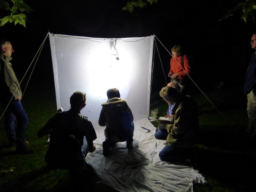 Vanaf de schemering zullen nachtvlinders op het licht af komen. Wanneer de lamp weer uit gaat vliegen de vlinders weer verder. Zo kunnen we ze bekijken zonder dat de vlinders en last van hebben.