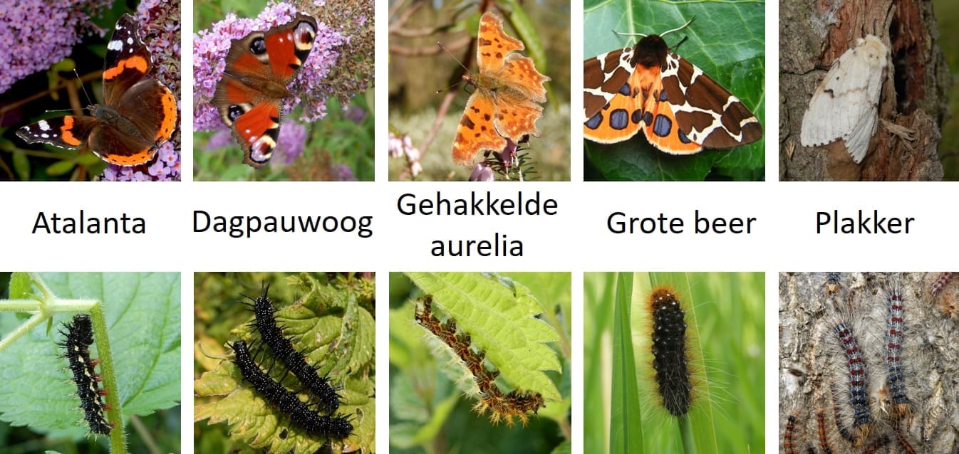 Wie wil er nou geen tuin vol kleurrijke vlinders in de zomer? Voor het zover is moet elke vlinder eerst groot zien te worden als rups. Dat er een rups in Nederland voorkomt die de eikenprocessierups heet zal weinig mensen zijn ontgaan en ook deze wordt uiteindelijk vlinder. Het is een vrij kleine nachtvlinder die vooral ’s nachts actief is en die we dus niet veel te zien krijgen. Maar er zijn nog veel meer rupsen in ons land te vinden. Stuk voor stuk op weg om zich tot mooie vlinders te ontpoppen. Naast de processierupsen hebben veel rupsen in Nederland haren op hun rug, ook rupsen van bekende dagvlinders. Deze haren zijn een goede verdediging tegen predatoren. Ze geven echter niet dezelfde reactie als de haren van de processierups en u hoeft zich om deze rupsen dan ook geen zorgen te maken. Een rups die veel verward wordt met een processierups is de rups van de plakker. Deze nachtvlinder kan ook in grote aantallen in de tuin of op het huis gevonden worden maar deze rupsen zijn ongevaarlijk. Ook de rups van de dagpauwoog of de grote beer ziet er indrukwekkend uit. Stuk voor stuk ongevaarlijk en vooral erg mooi als vlinder.