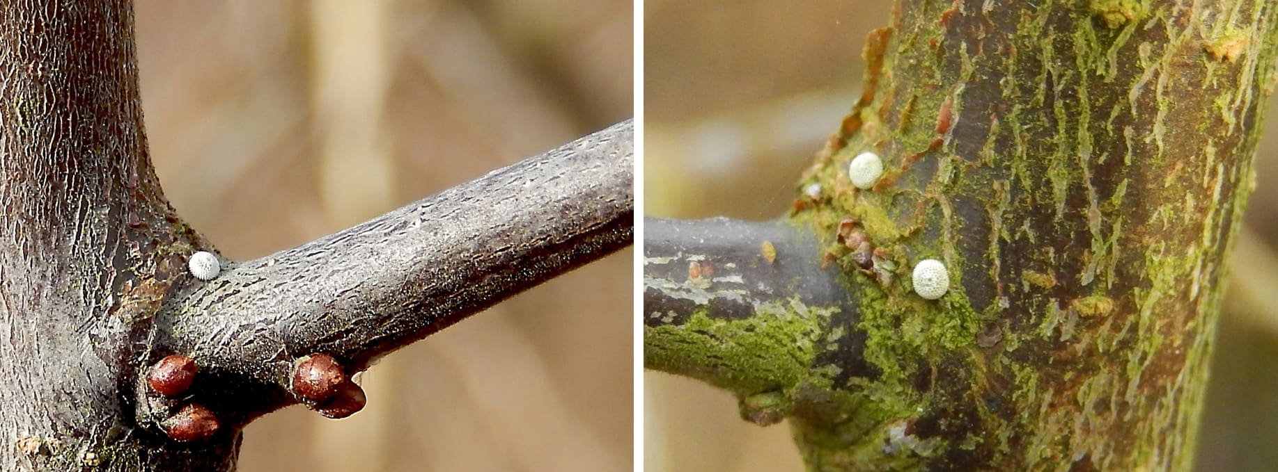 Dit betekent dat de eitjes de hele winter aanwezig zijn in de struiken en daar ook kunnen worden gezocht en geteld. Omdat de vlinder zelf niet zo makkelijk wordt gevonden, is het tellen van eitjes in de winter dé methode om in beeld te krijgen waar de vlinder voorkomt en hoe het ermee gaat. Die eitjes zijn maar anderhalve millimeter groot en het lijkt zoeken naar een speld in een hooiberg, maar als je ervaring hebt en er een keer eentje hebt gezien, valt het wel mee. De eitjes zijn wit en vallen best goed op. Ze zitten vooral in de oksels van takjes en doorns en je kunt er dus gericht naar zoeken. Op alle bekende vliegplaatsen zijn er in de winter liefhebbers bezig met tellen en als u een keertje mee wilt tellen, kunt u bij zo’n groepje aanhaken. Op de speciale pagina over de sleedoornpage op de website van De Vlinderstichting vindt u meer informatie en ook een agenda met wanneer en waar er geteld gaat worden. Ook staat daar een contact-link voor als u een keer mee wilt zoeken.