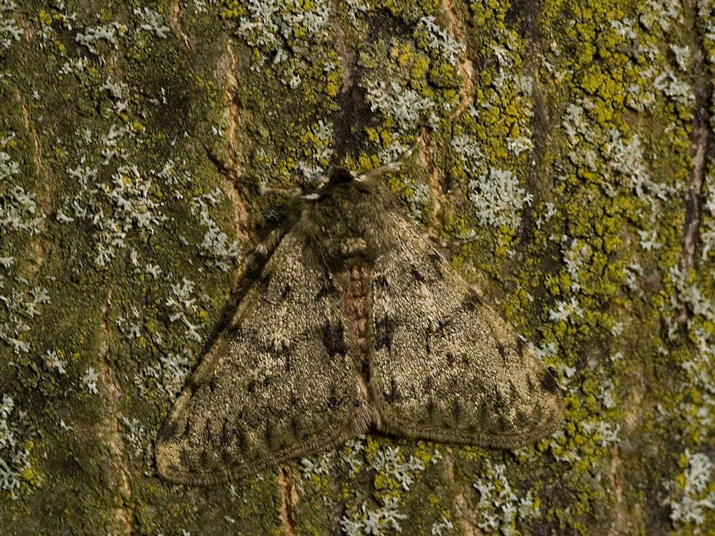 Er zijn niet veel vlinders actief met dit koude weer, maar een enkele nachtvlinder wordt wel gemeld. De perentak is daar een van. In minder koude nachten kun je deze nachtvlinder nu tegenkomen in parken, struwelen en zelfs in je tuin.