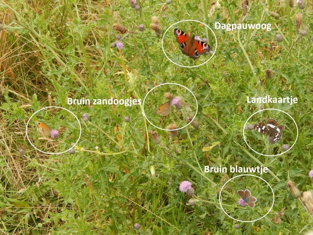 In het voorjaar zien we planten als look-zonder-look in groten getale langs die paden bloeien, dan zijn er ook honderden tot duizenden oranjetipjes te vinden. In de zomer is koninginnenkruid een zeer opvallende en veel voorkomende plant, ook dit is een vlindertrekker bij uitstek. Voor de grotere soorten als dagpauwoog, kleine vos en atalanta is het een zeer aantrekkelijke nectarplant. Waarschijnlijk zijn er dit jaar tegen die tijd ook flink wat distelvlinders te verwachten, ook die zie je vaak op koninginnenkruid.