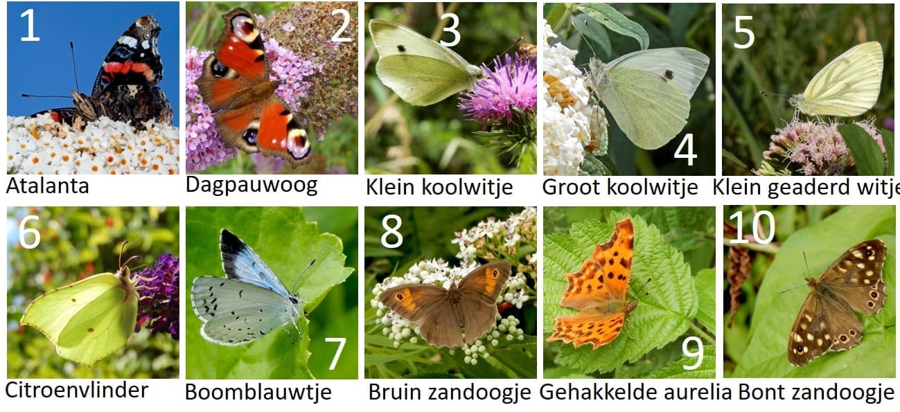 Inmiddels zijn er dan ook al meer dan 5000 tellingen ingevoerd en zijn er al bijna 45.000 vlinders geteld. De atalanta is het meest gezien (meer dan 13.000), gevolgd door de dagpauwoog en de drie koolwitjes