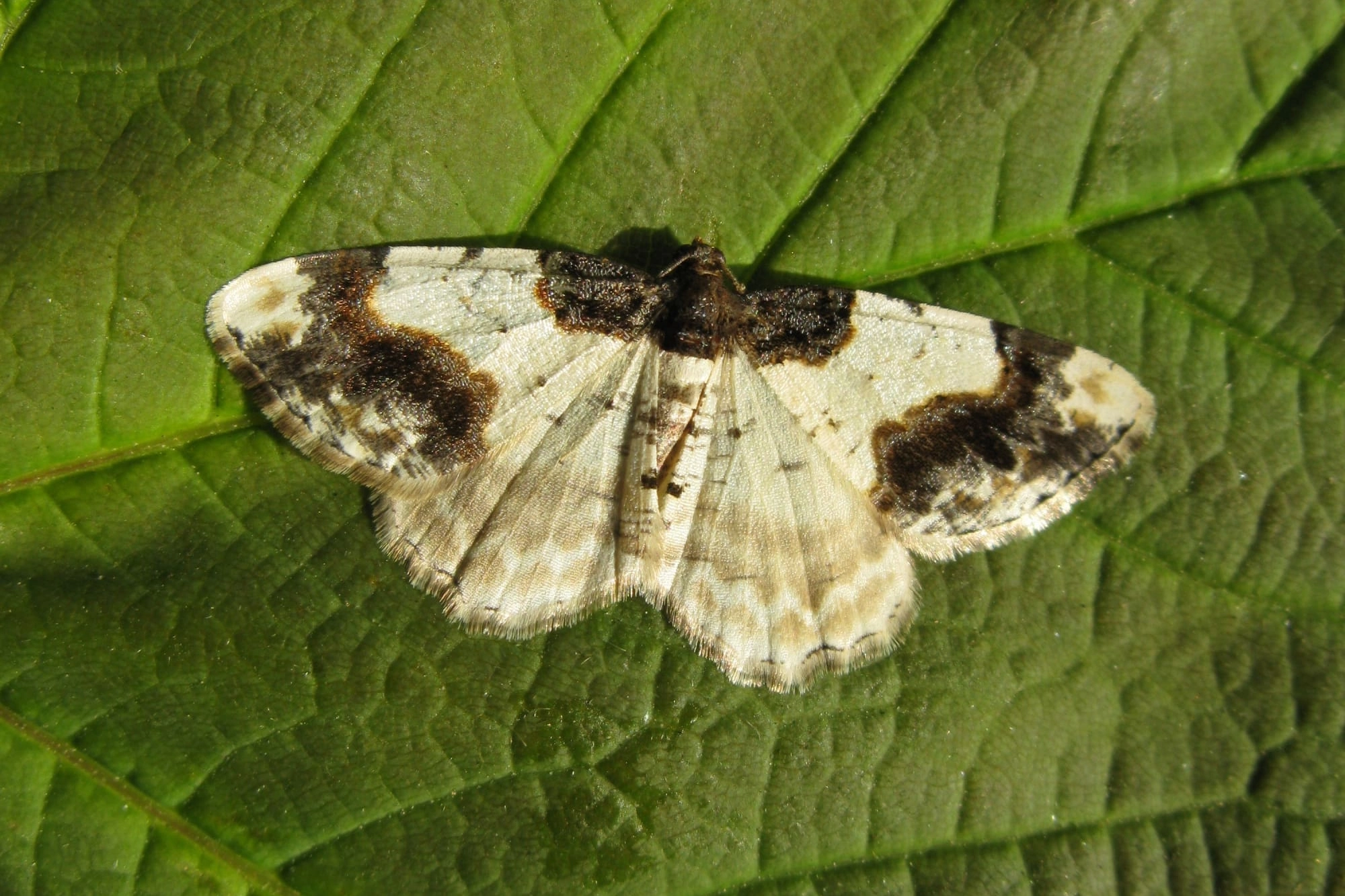 Voorvleugellengte: 12-14 mm. Goed herkenbaar door de zwartachtige vlek aan de vleugelwortel en de brede zwarte buitenste dwarsband (bij verse vlinders zijn beide bedekt met blauwgrijze schubben) op de vuilwitte vleugel. Er is weinig variatie.