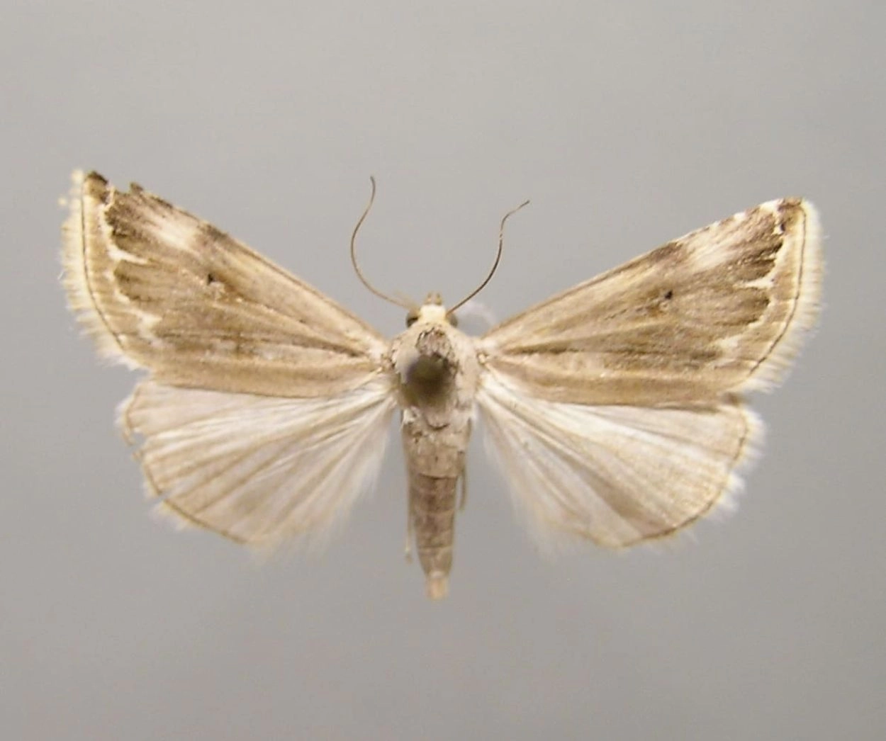 Voorvleugellengte: 8-9 mm. De smal toelopende voorvleugel van deze kleine uil heeft een vuilwitte grondkleur met in het middenveld en zoomveld een paarse of grijsachtig bruine tekening, die zeer variabel is. Sommige exemplaren hebben slechts een lichtbruine schaduw langs de dwarslijnen, maar er zijn ook vlinders die een geheel paars gekleurd midden- en zoomveld hebben. Daartussen zijn allerlei variaties mogelijk. Langs de grof geschulpte witte golflijn ligt vaak een zwartachtige rand.