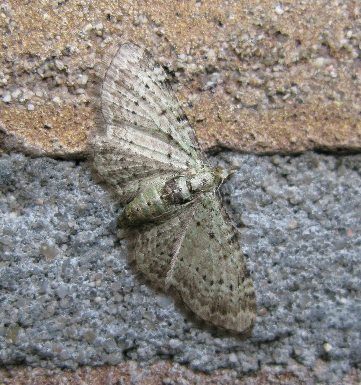 Voorvleugellengte: 9-11 mm. De tamelijk ronde voorvleugel heeft een bleke grijsachtig groene grondkleur en is zwakker getekend dan bij andere Pasiphila-soorten. In de loop van de vliegtijd vervaagt de groene kleur naar licht grijsachtig bruin. De centrale dwarslijnen op de voorvleugel bestaan uit twee rijen zwarte vlekjes en daartussen bevindt zich een driehoekige middenstip. De achtervleugel is witachtig grijs. Het achterlijf heeft, net als bij groene dwergspanner (P. rectangulata), een zwart bandje en een rij zwarte stippen.