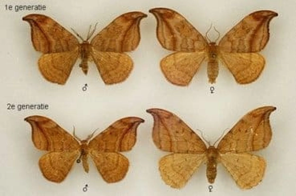 Zie de berkeneenstaart (D. falcataria) en de linde-eenstaart (Sabra harpagula).Bekijk de gedetailleerde verschillen met illustraties tussen de twee Drepana-soorten.