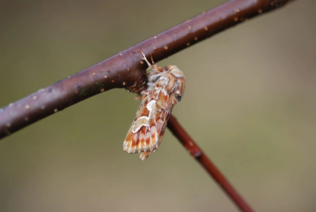 Begin maart-begin juni in één generatie. De vlinders komen op licht en bezoeken wilgenkatjes. Wanneer de vlinder met de kop naar beneden zit te rusten op het uiteinde van de jonge uitlopers van de waardplant valt hij nauwelijks op.