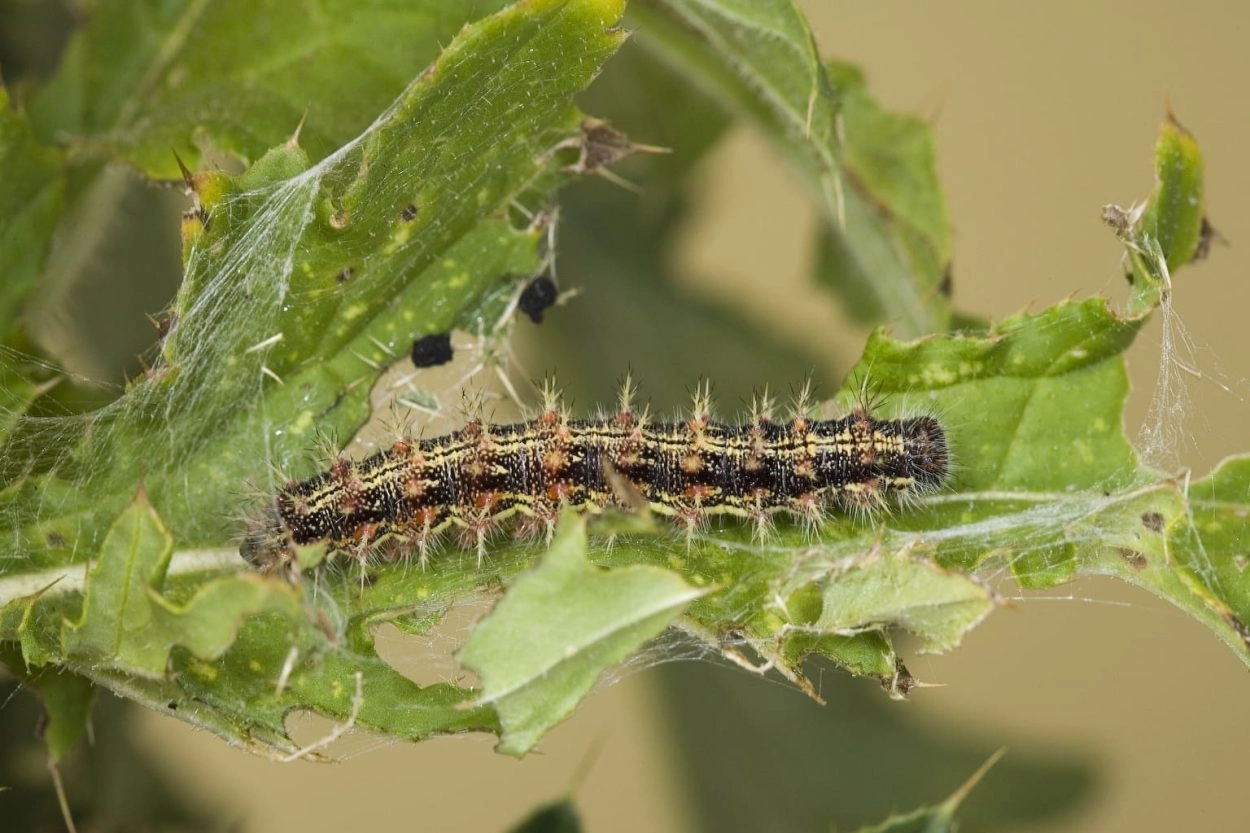 Atalanta (Vanessa atalanta).N.B.: vergelijk behalve de uiterlijke kenmerken ook de tijd van het jaar waarin de rupsen voorkomen, het habitat en de waardplant(en).