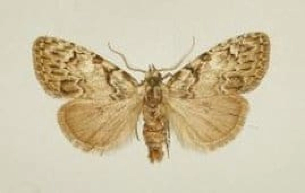 Voorvleugellengte: 9-11 mm. Dit visstaartje heeft een grijsachtige voorvleugel met enkele tamelijk onregelmatige zwarte dwarslijnen. De buitenste dwarslijn is sterk getand, de binnenste dwarslijn is S-vormig. Er is geen duidelijke middenband. In de buitenste zone liggen kleine maar duidelijke zwarte streepjes, die soms een soort dwarsband vormen. De achtervleugel is bruin en heeft een duidelijke middenstip.