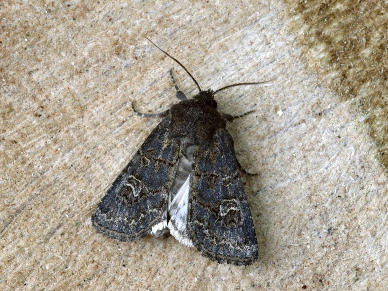 Voorvleugellengte: 15-19 mm. De tamelijk brede voorvleugel van deze stevig gebouwde uil heeft een rechte voorrand en een vrij gelijkmatig zwartachtig bruine grondkleur met daarover een fijne goudgele spikkeling. Goed zichtbaar zijn de goudgeel omlijnde ringvlek en niervlek en de lichte golflijn; de donkere, enigszins licht gerande middelste dwarslijnen zijn minder opvallend. Er is weinig variatie; soms vertoont de niervlek een puntvormige uitstulping in de richting van de ringvlek. Het mannetje heeft licht geveerde antennen en een grotendeels witachtige achtervleugel. Bij het vrouwtje is de achtervleugel grijs en bij de vleugelwortel witachtig.