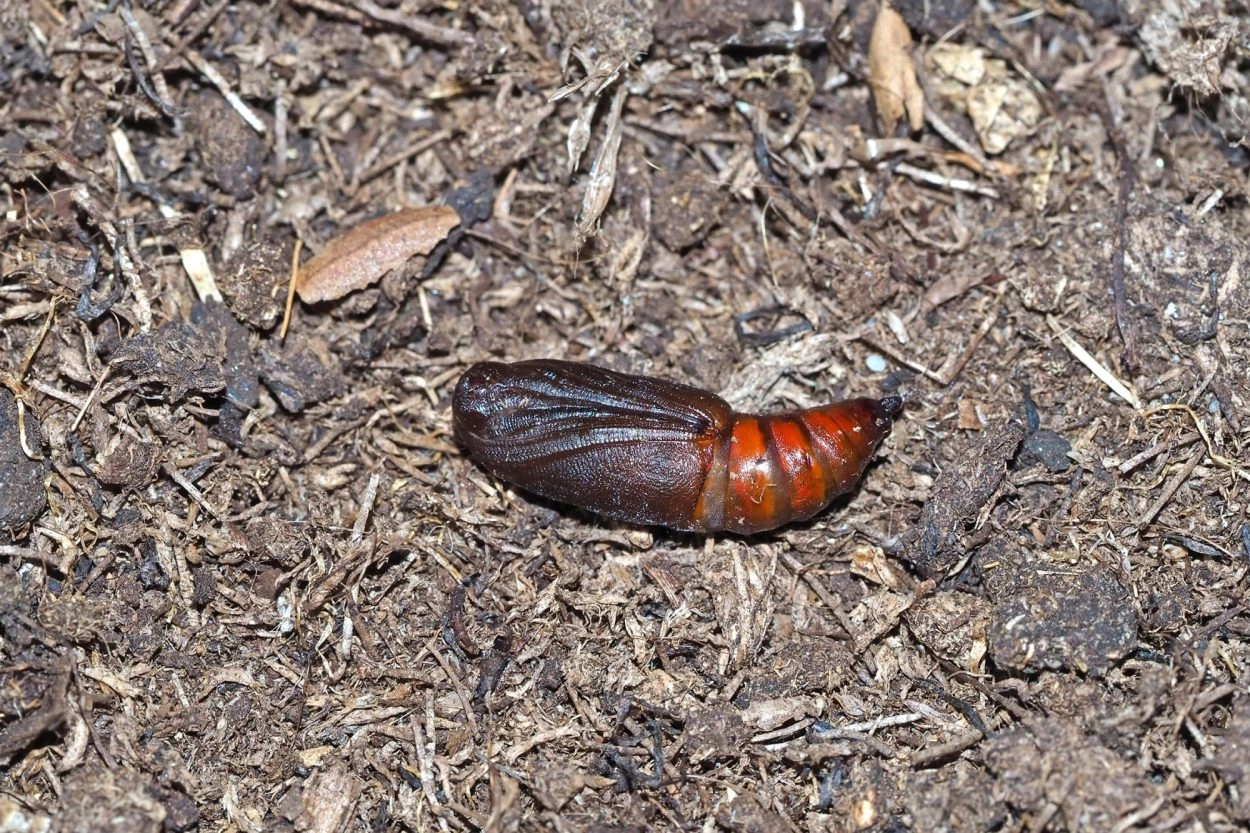 Ter Haar: Rups is asgrijs met donkere, stofkleurige rug- en zijlijn; kop zwart; buik grijs.