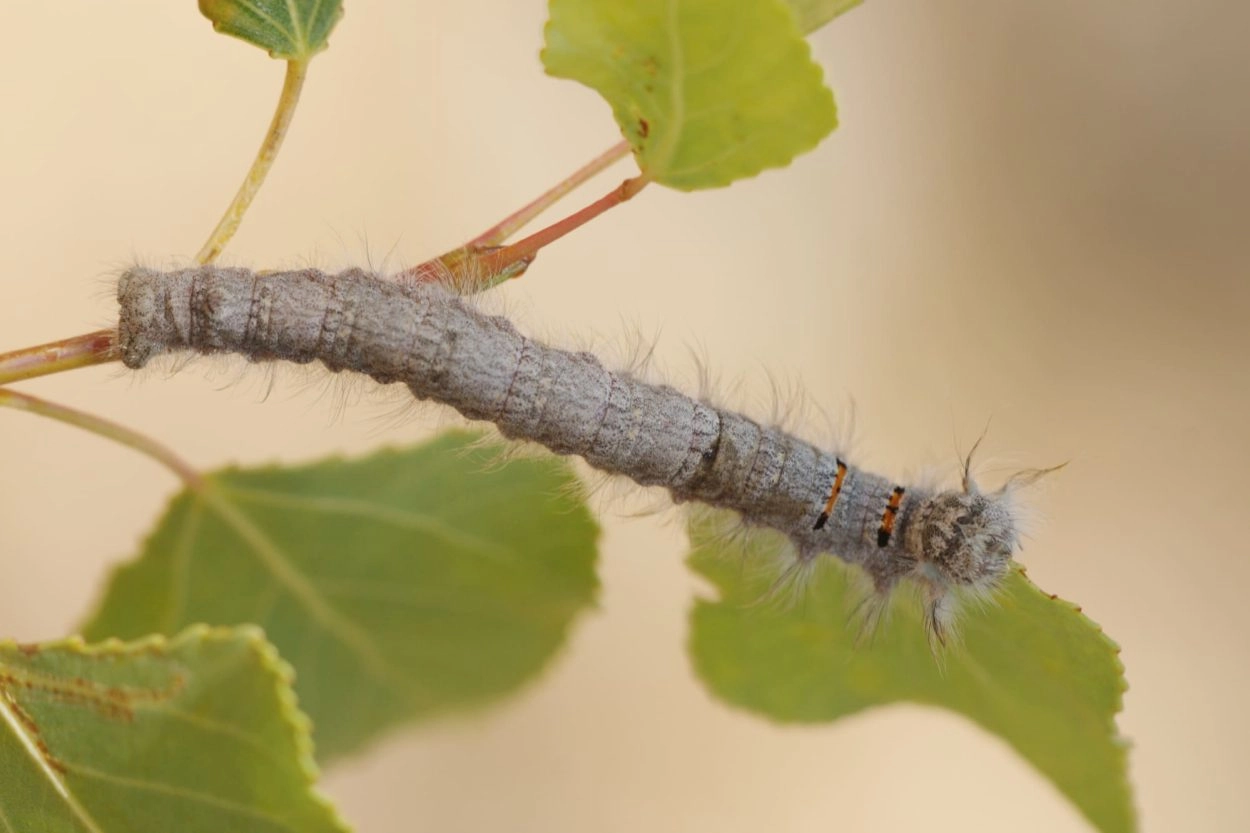 Zwarte herfstspinner (Poecilocampa populi), populierenblad (Gastropacha populifolia), eikenblad (Gastropacha quercifolia) en kersenspinner (Odonestis pruni).N.B.: vergelijk behalve de uiterlijke kenmerken ook de tijd van het jaar waarin de rupsen voorkomen, het habitat en de waardplant(en).
