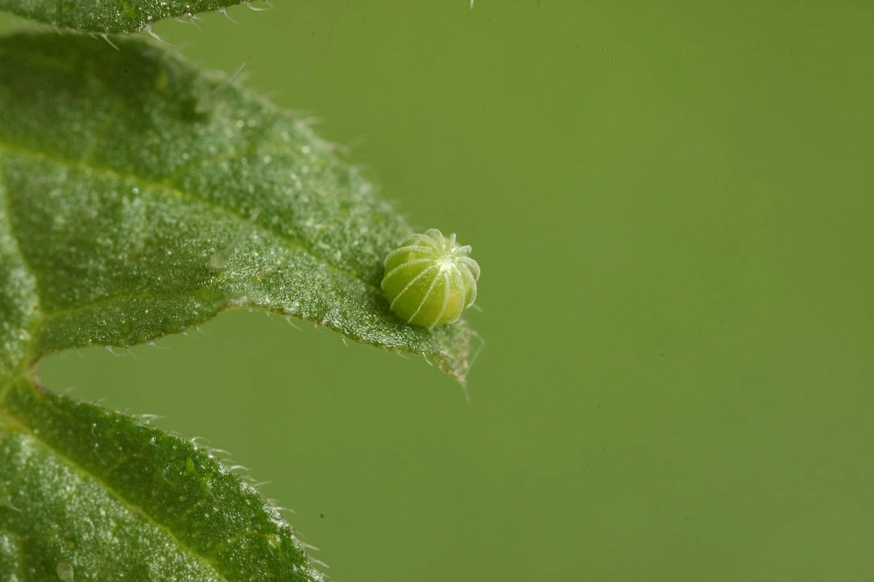 Het vrouwtje heeft bij het afzetten van de eitjes een voorkeur voor planten die groeien op halfbeschaduwde, vochtige plaatsen in de beschutting van struweel of bos. Ze zet de eitjes afzonderlijk of per twee af op de bladrand.