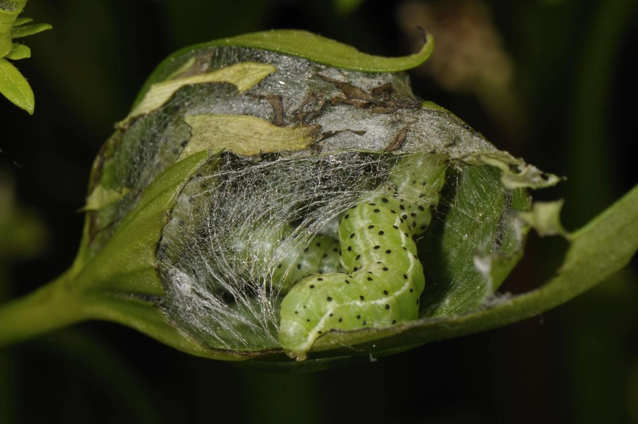Rups: augustus-juni. Jonge rupsen leven bij elkaar in een spinsel; later rusten ze aan de onderzijde van een blad van de waardplant. De verpopping vindt plaats in een gele cocon aan de onderzijde van een blad van de waardplant.